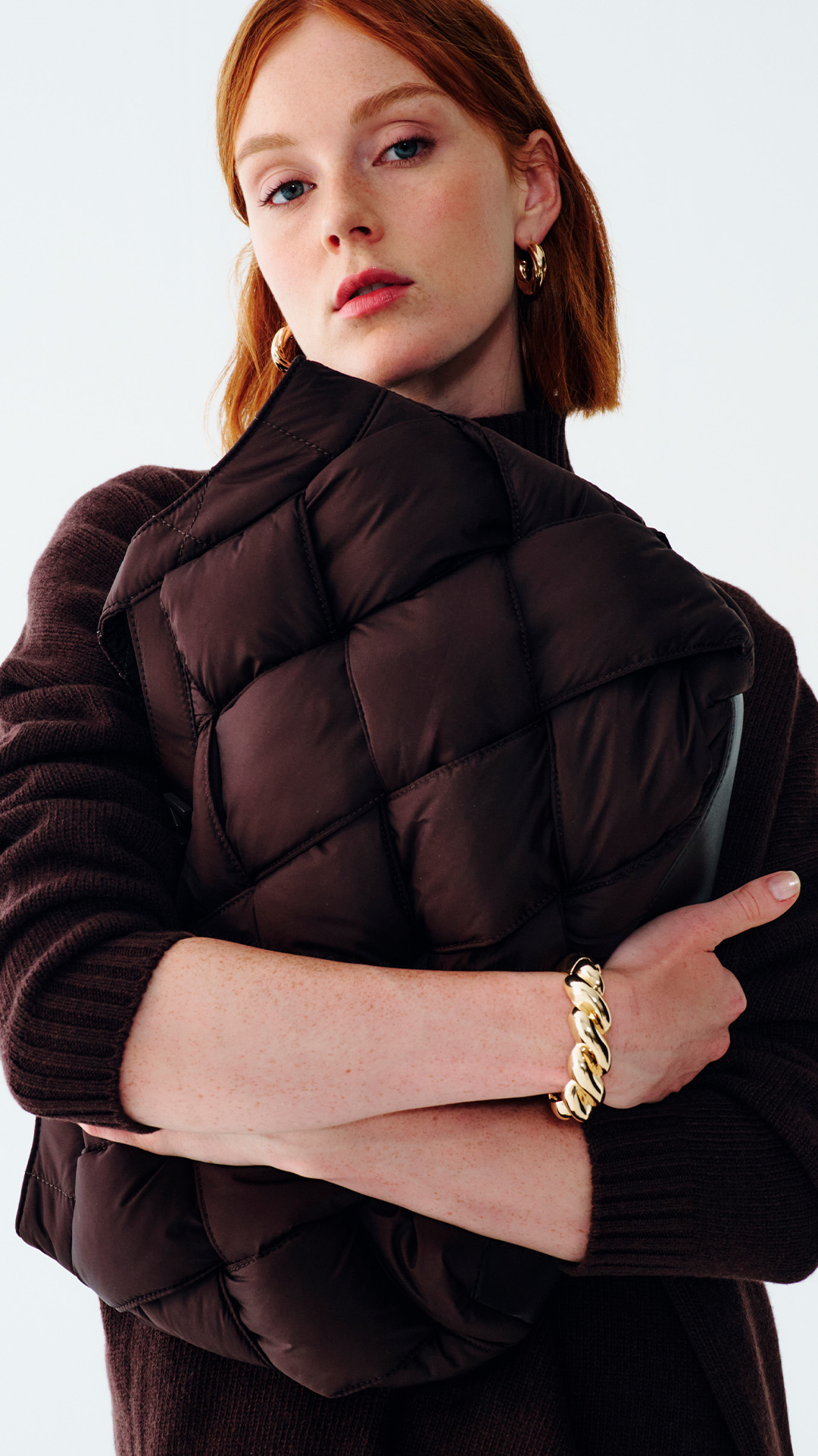 Chocolate is winter’s new temptation: maxi dresses, faux leather blazers and double-breasted peacoats mix with long gloves, snake-print slingbacks and quilted bags.