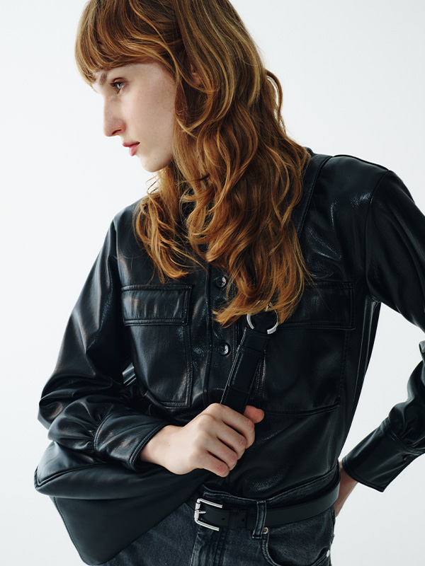 Leather meets denim with the same energy and vibes as the 1990s. Oversized jackets, wide-leg jeans and simple silhouettes that evoke the minimalism of that era.