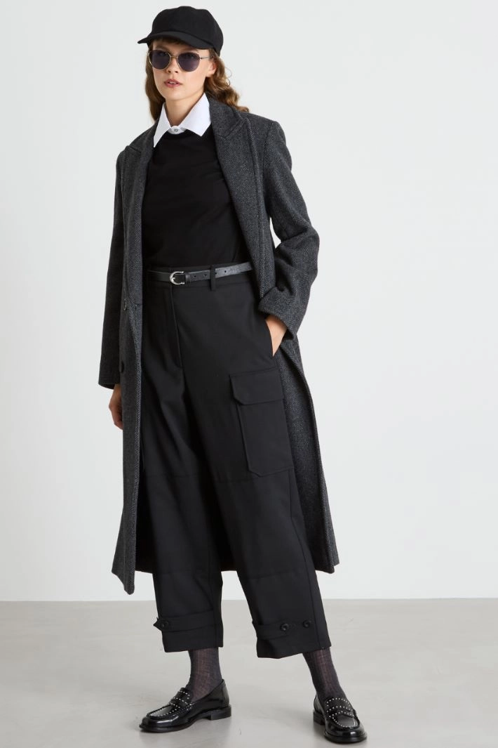 Fabric 70% wool, 25% polyamide, 5% other fibres; lining 60% acetate, 40% viscose.