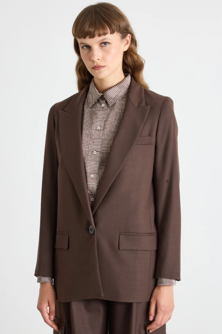 Straight-fit wool-blend jacket with a lapel collar, chest pocket, long sleeves, flap pockets, and a single-breasted button closure. Lined.