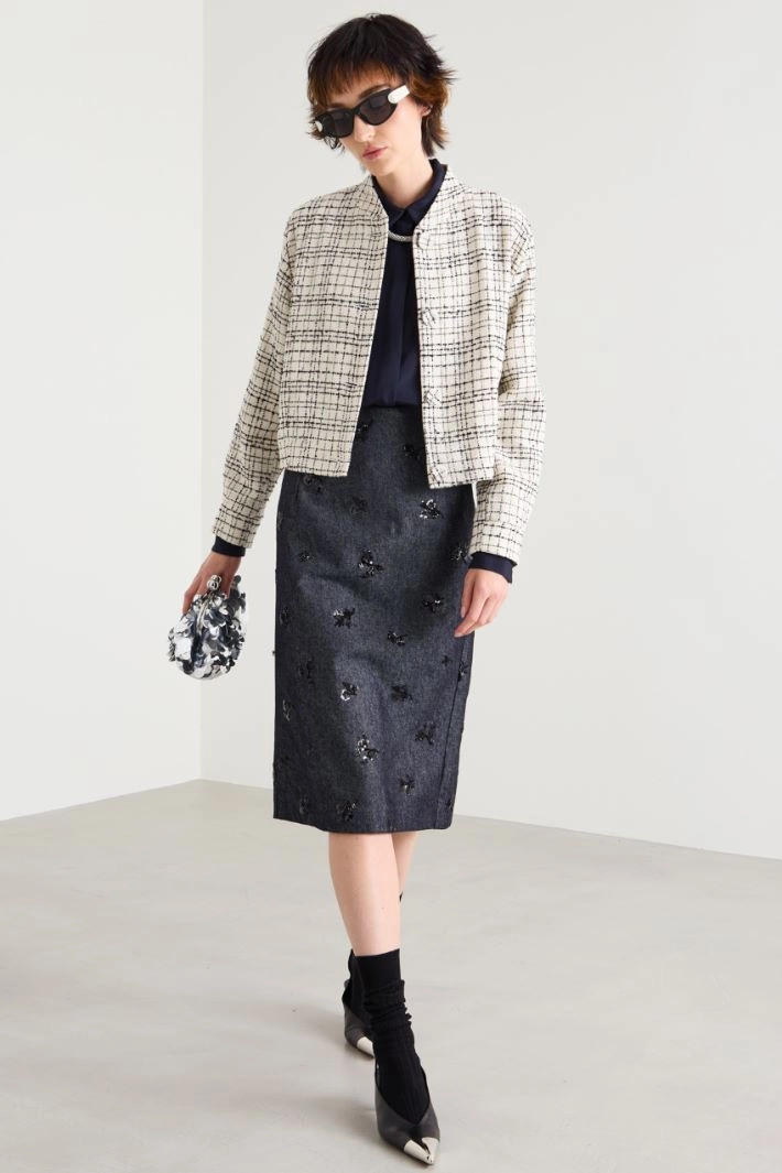 Lamé tweed bomber jacket