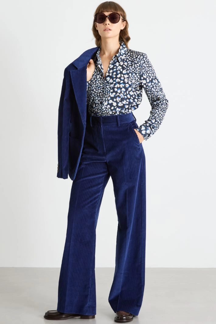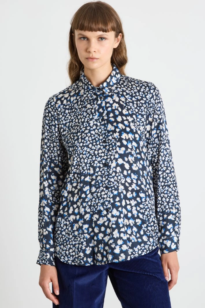 Flowing shirt in all-over printed twill, with a classic collar, long sleeves with cuffs and buttons, and visible button fastening.