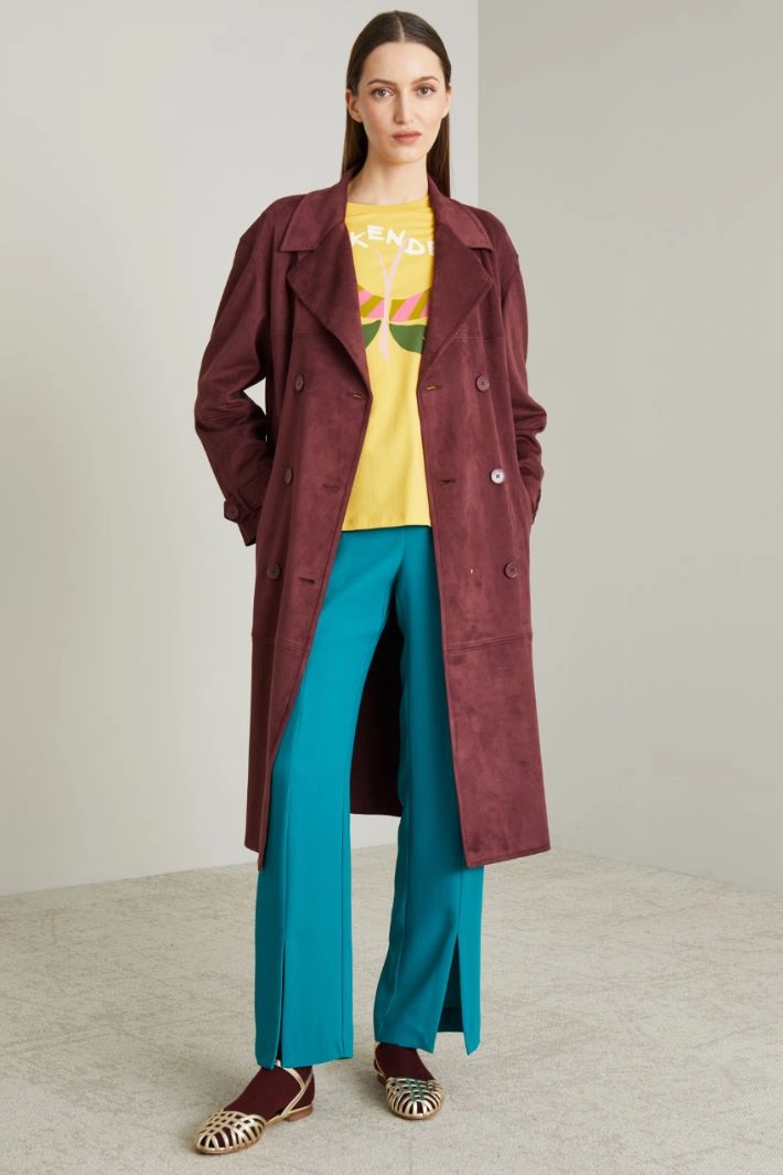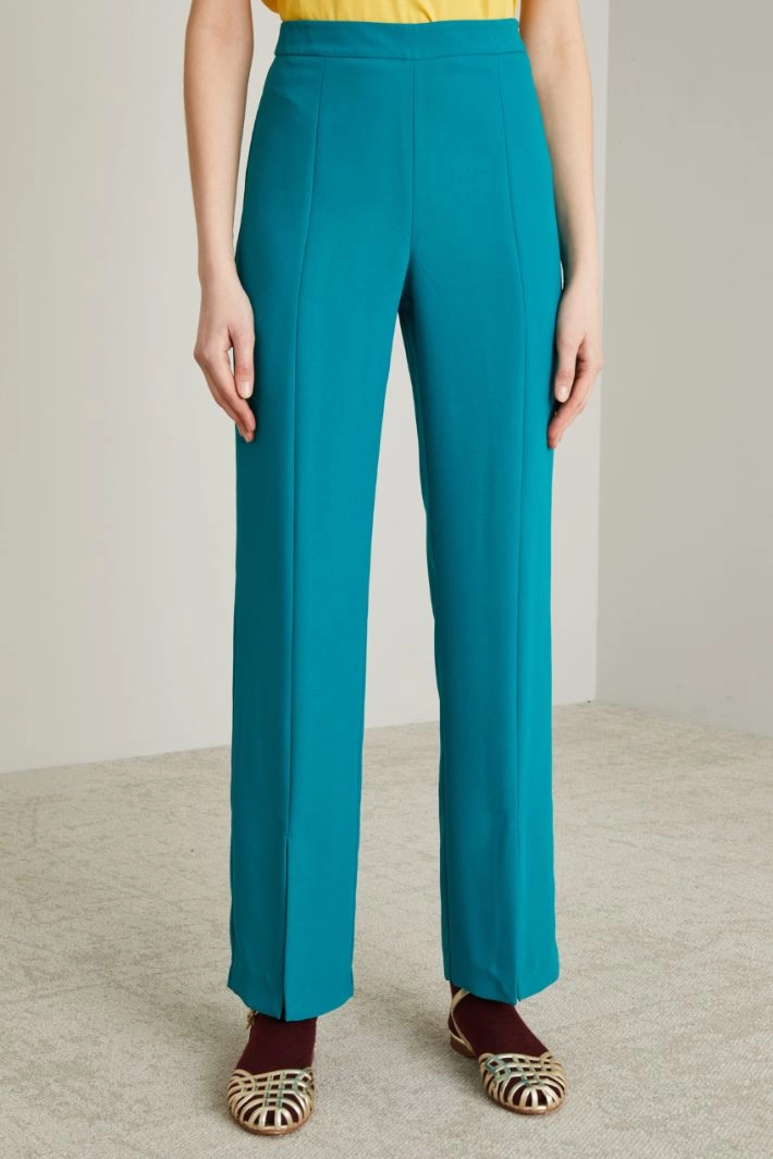 Straight-leg, fluid envers satin trousers with a lengthwise crease, front slits at the bottom and invisible zip fastening on the side.