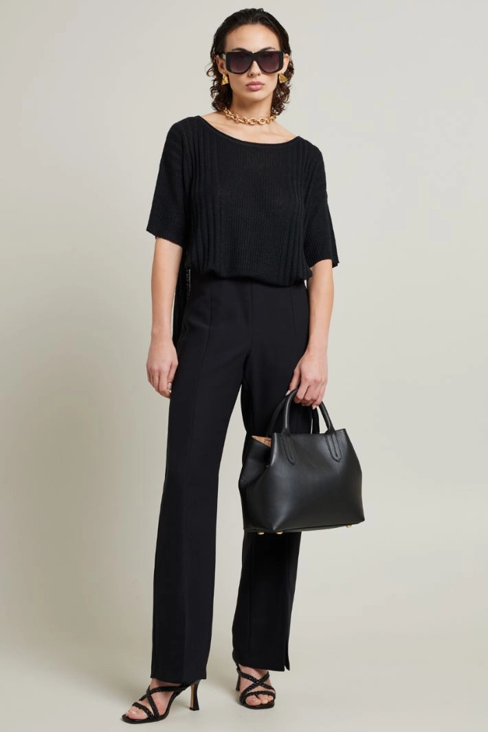 Straight-leg, fluid envers satin trousers with a lengthwise crease, front slits at the bottom and invisible zip fastening on the side.