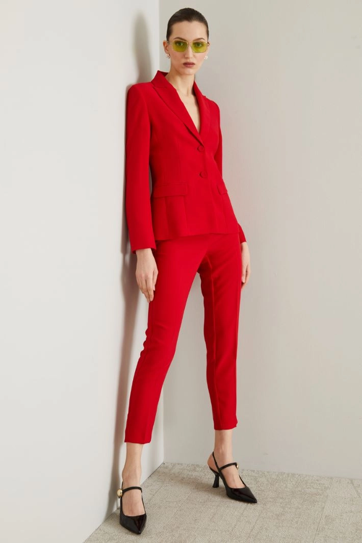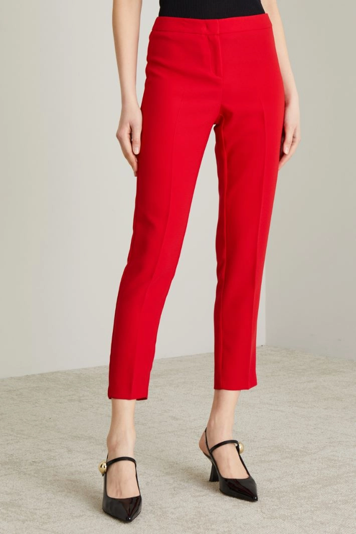Straight-fit envers satin trousers with waistband and pressed pleat. Zip fastening.