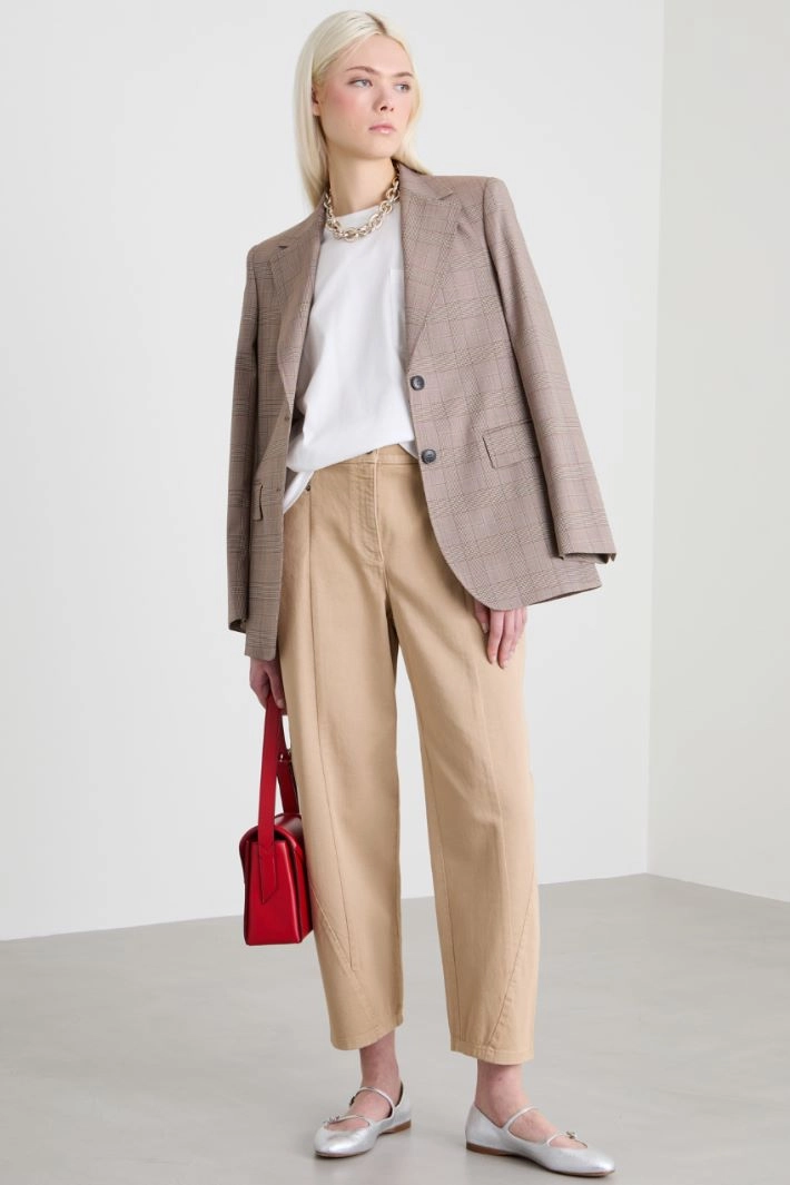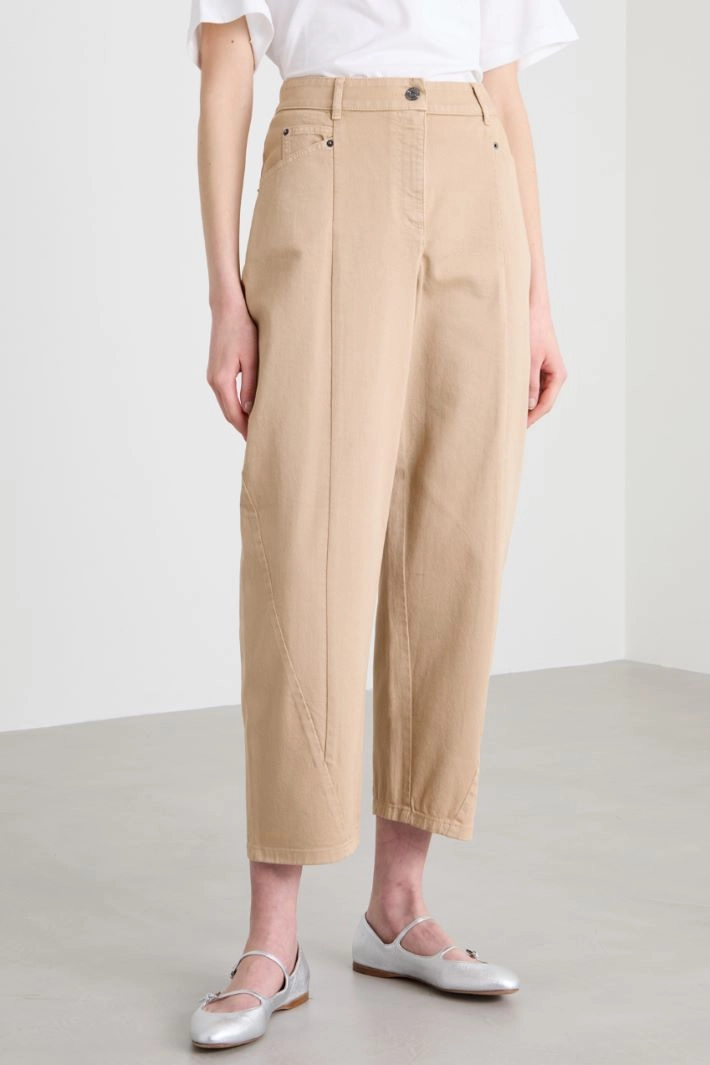 Boyfriend trousers in stretch cotton bull, with belt loops, five pockets and zip and button fastening.