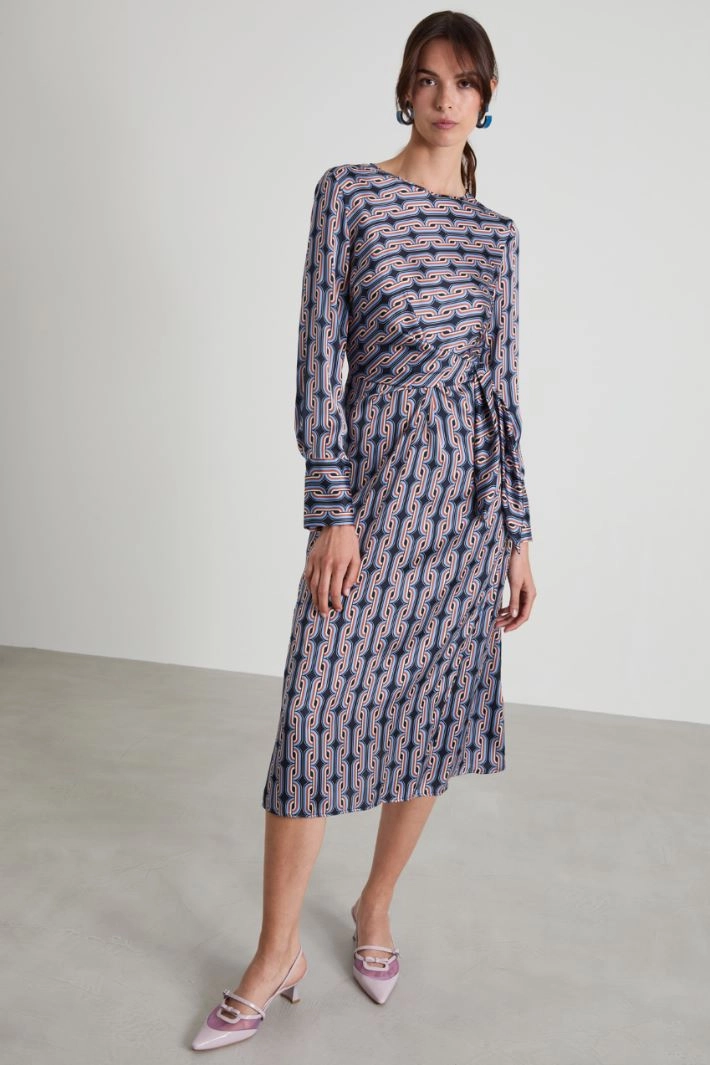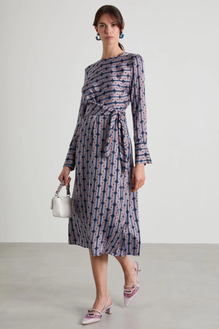 Patterned satin midi dress