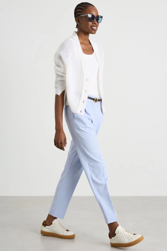 Regular-fit cardigan in ribbed alpaca and wool blend yarn, with a V-neck, long raglan sleeves and button fastening.