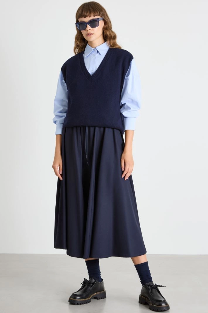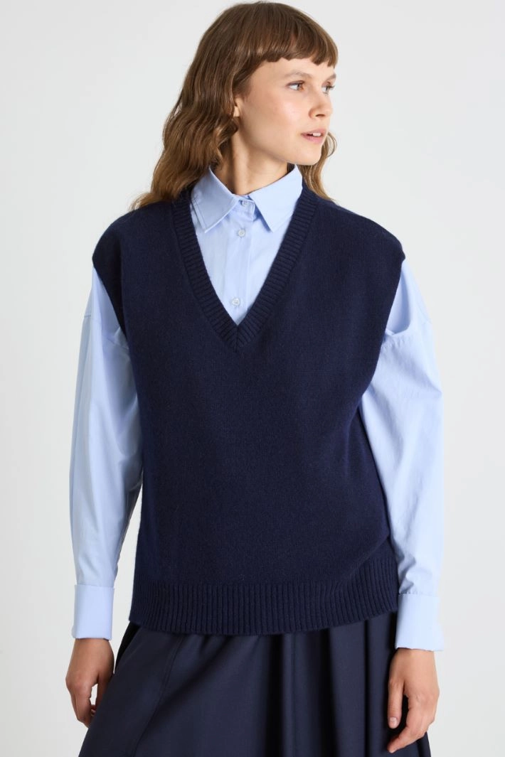 Straight-fit gilet in pure cashmere knit, with a V-neck, slits at the bottom and ribbed trim.