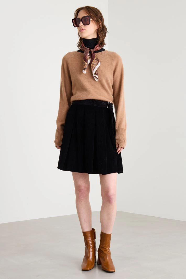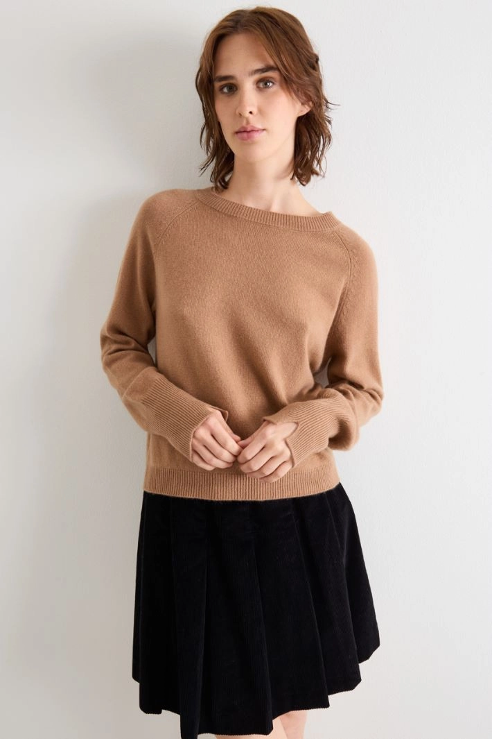 Regular-fit sweater in wool and cashmere yarn, with a round neckline, long raglan sleeves with slits at the bottom and ribbed trim.