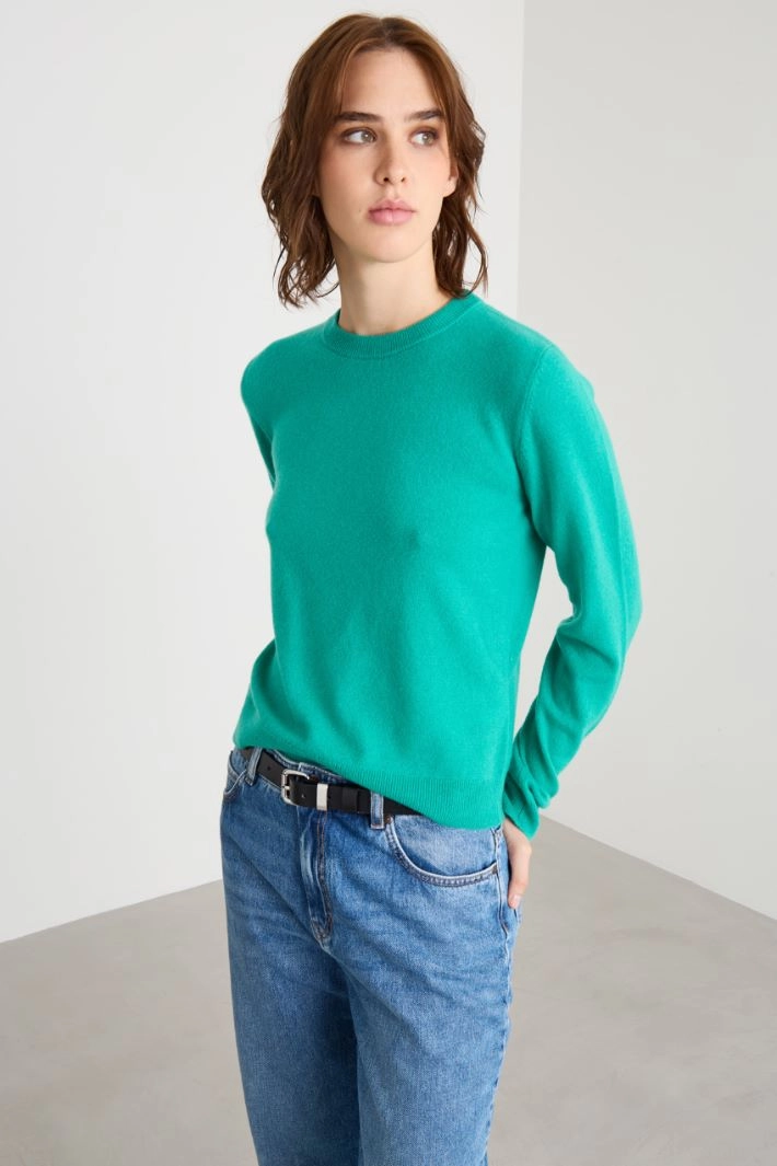 Regular-fit sweater in wool and cashmere yarn, with a crew neck, long sleeves and ribbed trim.
