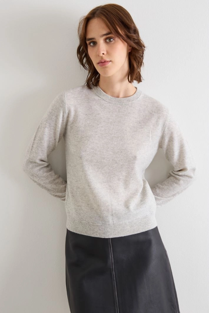 Regular-fit sweater in wool and cashmere yarn, with a crew neck, long sleeves and ribbed trim.