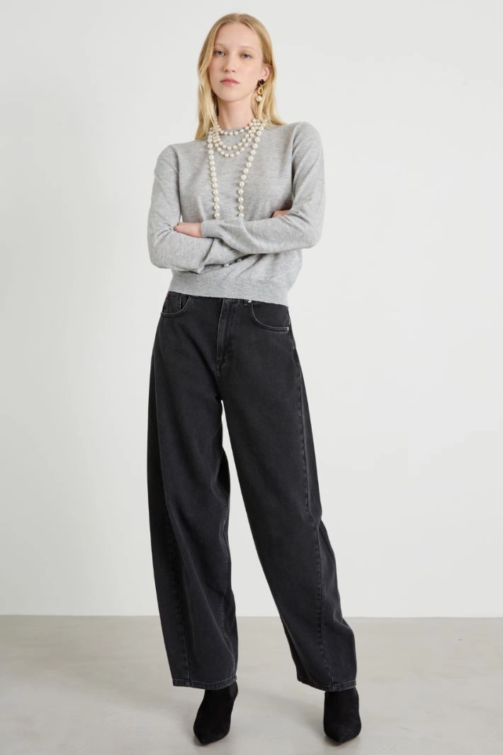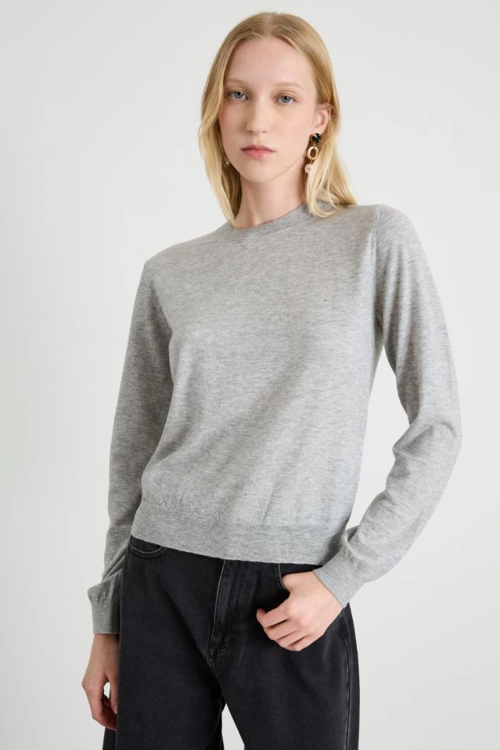 Regular-fit sweater in wool and cashmere yarn, with crew neck, long sleeves and ribbed trim.