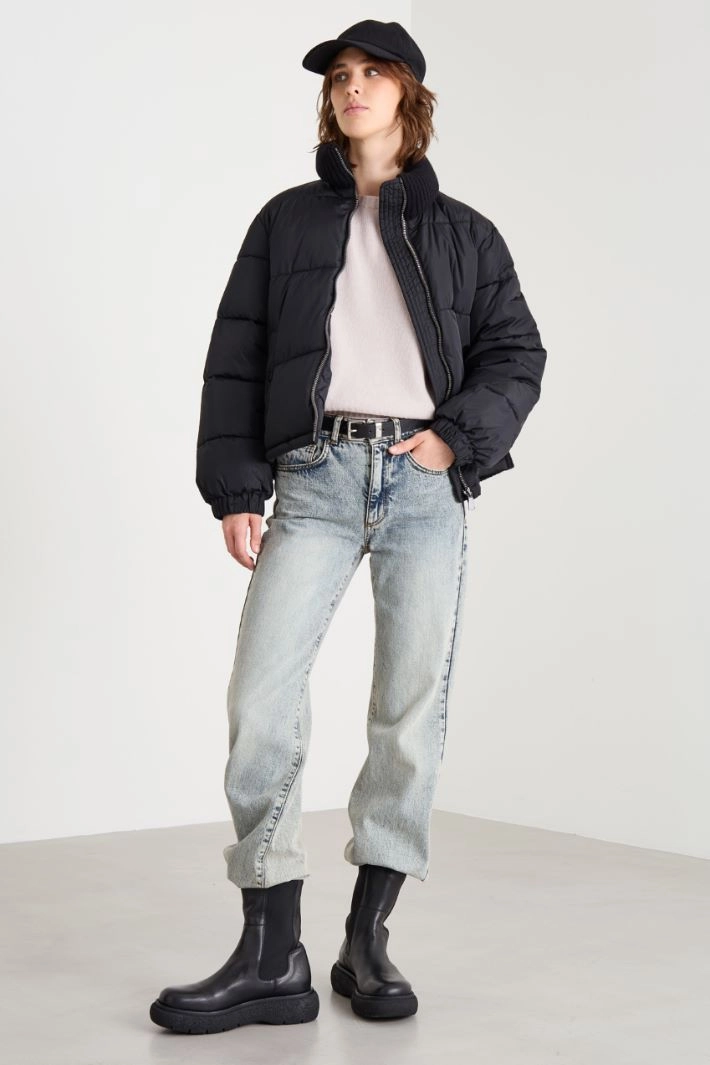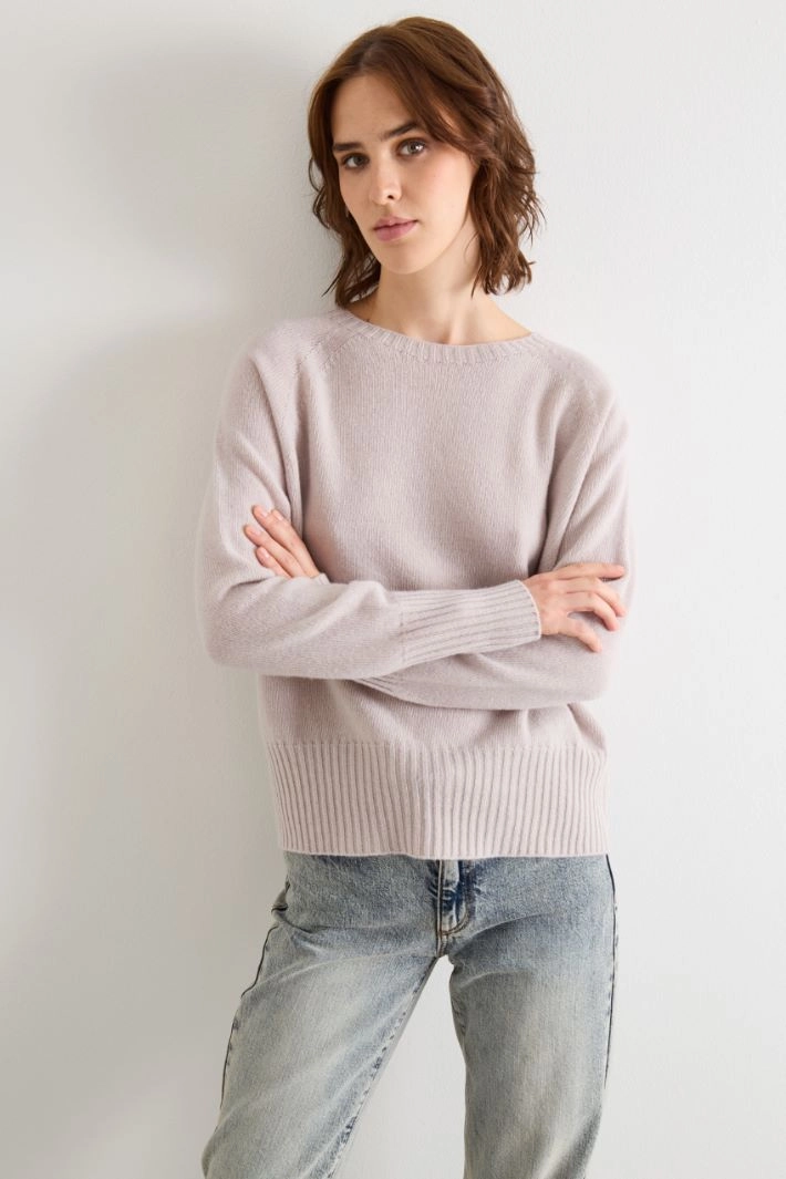 Regular-fit sweater in pure wool yarn, with a boat neckline, long raglan sleeves and ribbed trim.