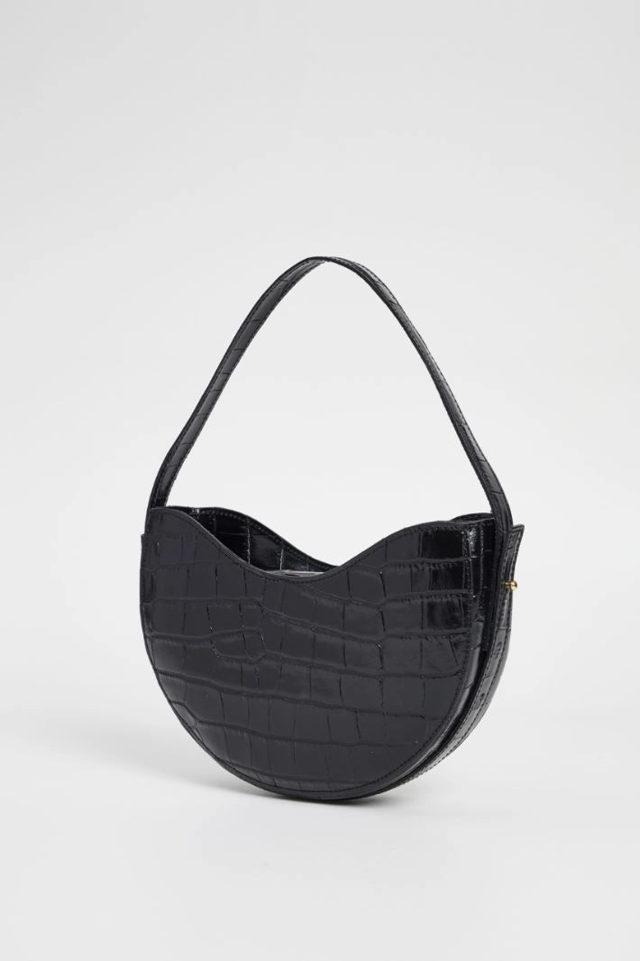 Shoulder bag in genuine leather, with adjustable handle, internal pocket and magnetic button closure.