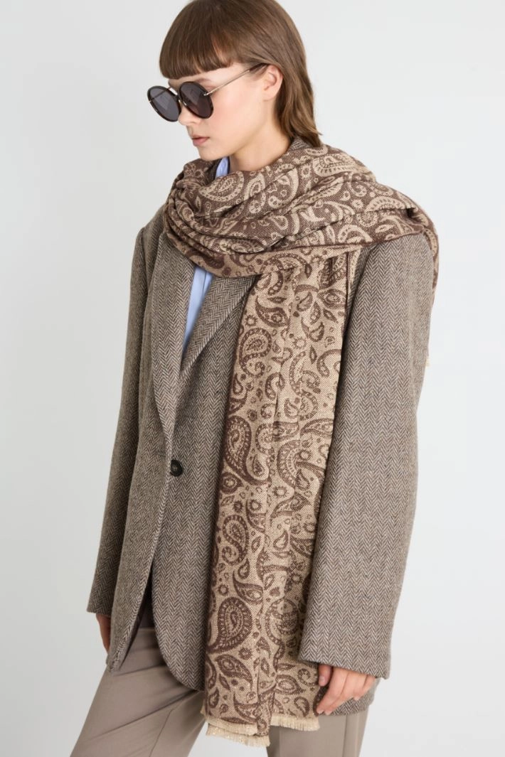 Stole in jacquard fabric, with lamé fibre insert and fringed edges.