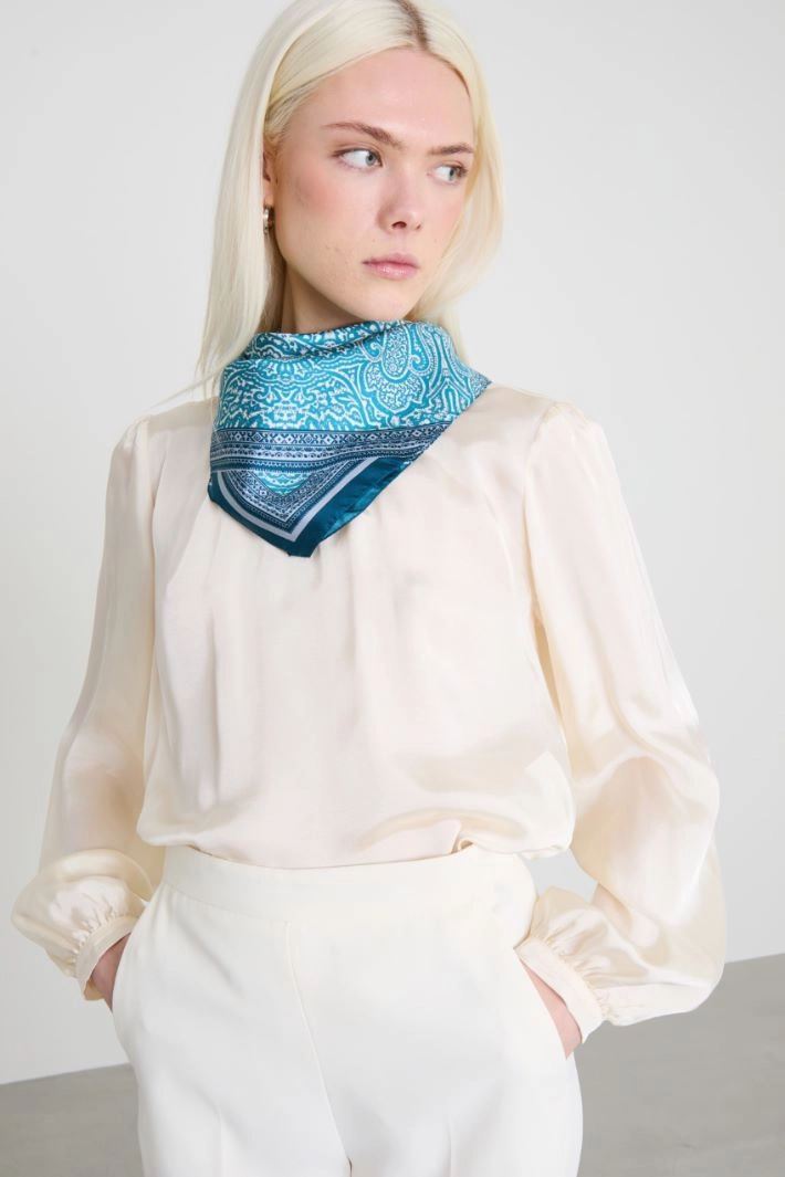 The measurements of the scarf are: Length 65 cm and Height 65 cm.