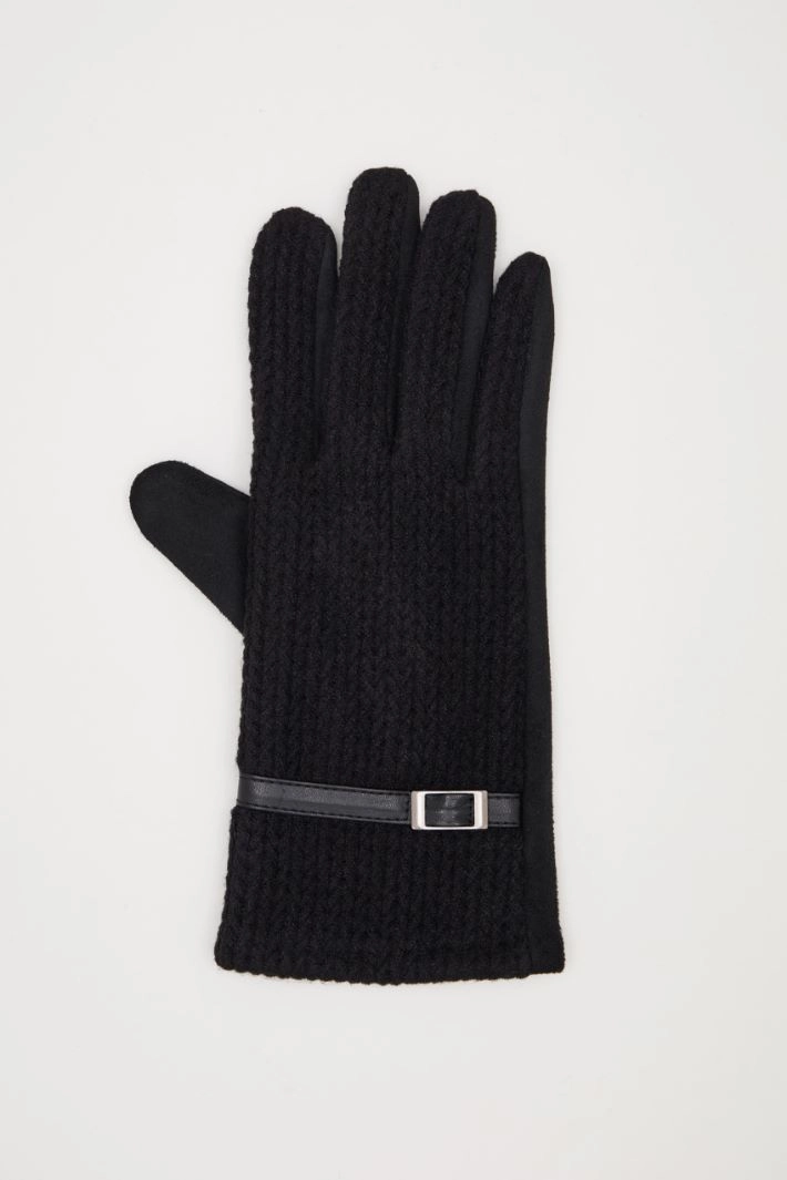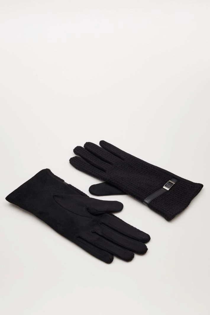 Gloves in suede-effect jersey, with fake strap detail on the wrist.
