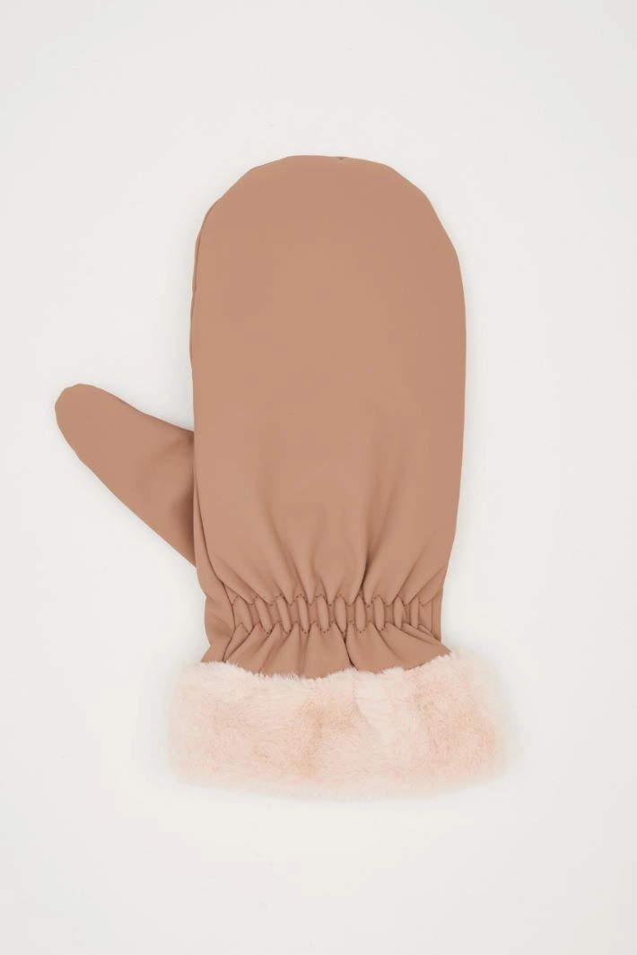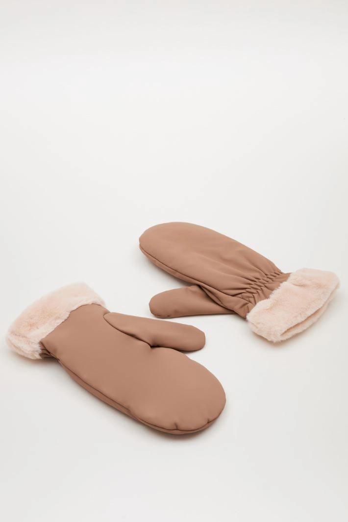 Gloves in technical fabric with a waxed finish, with a plush-effect edge and interior.