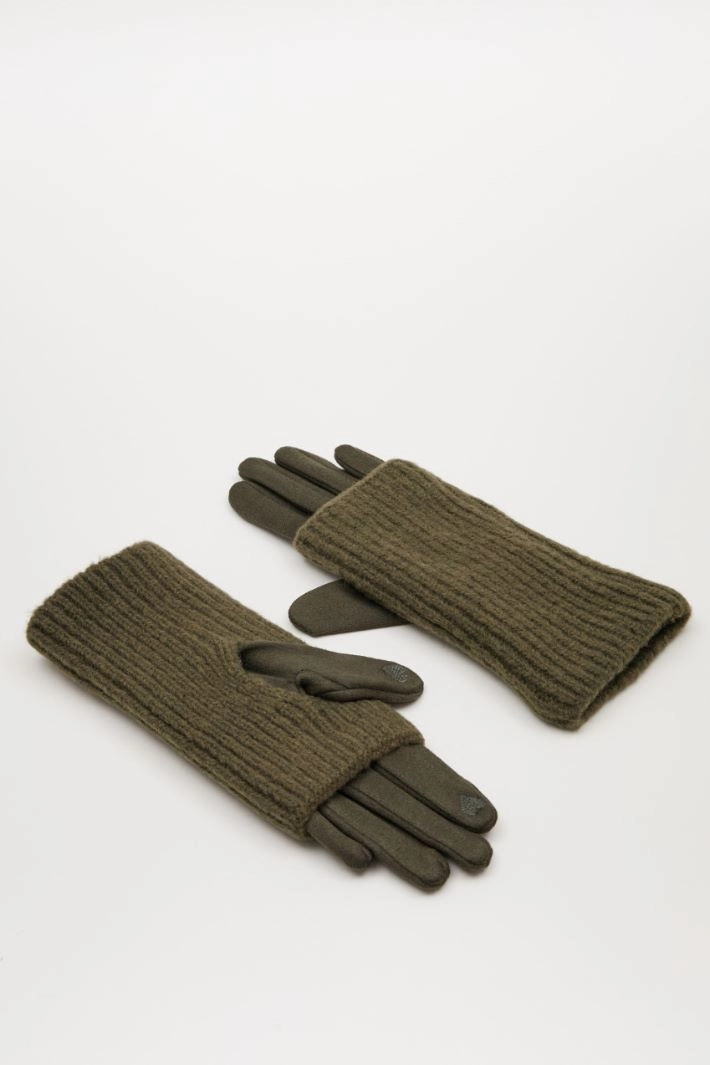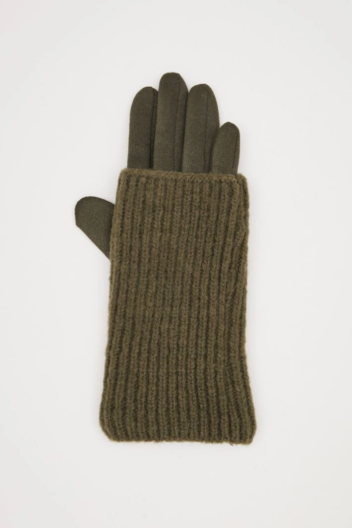 Gloves in suede-effect jersey, with ribbed knit insert. Plush interior.