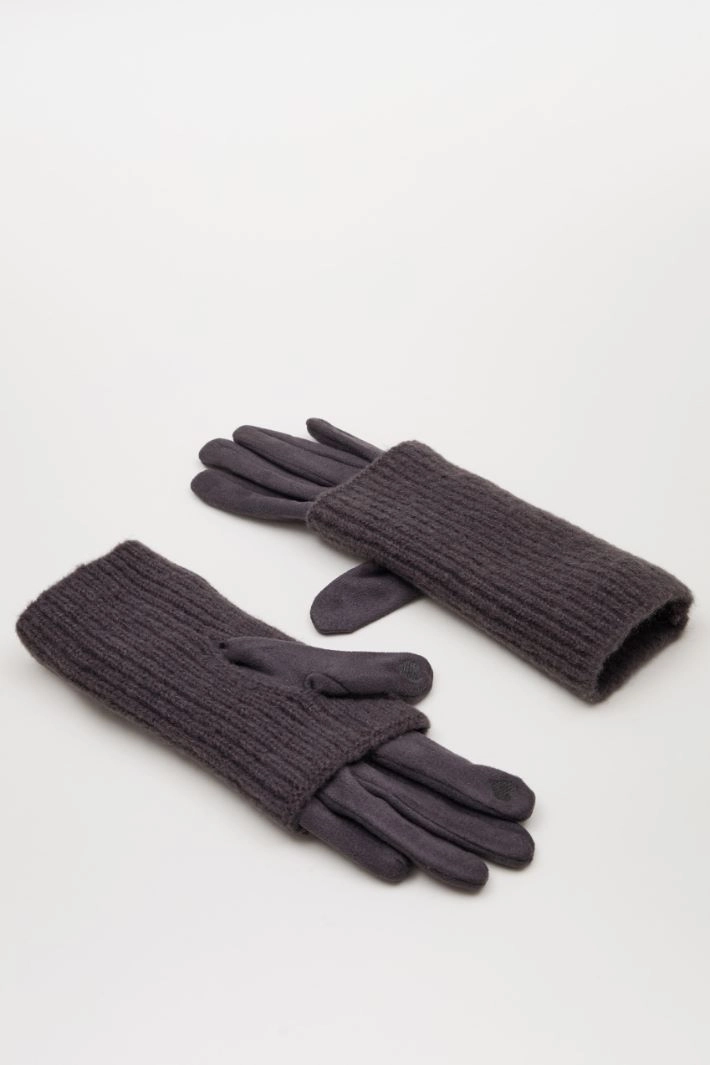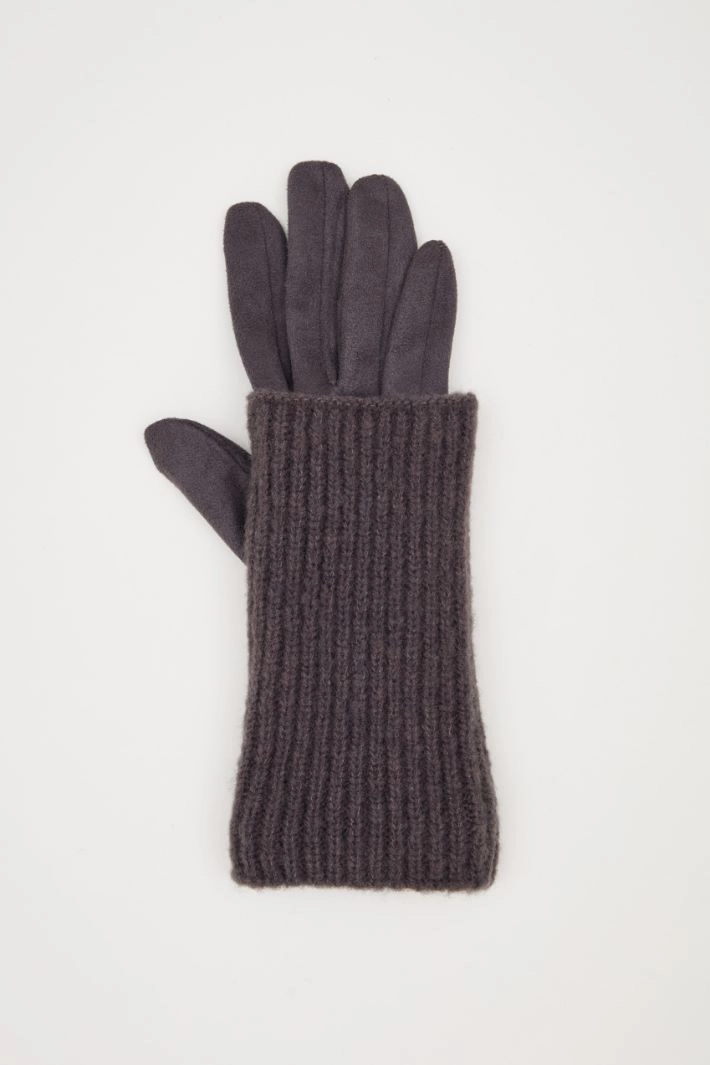 Gloves in suede-effect jersey, with ribbed knit insert. Plush interior.