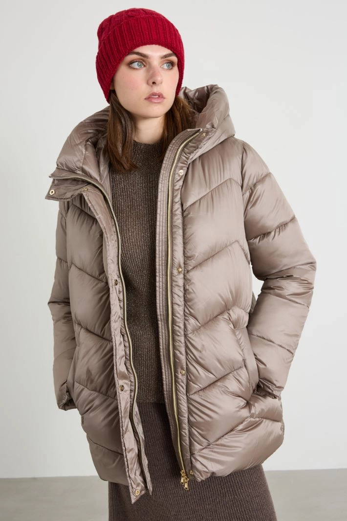 Hat in wool, viscose and cashmere, with cable knit and turn-up hem.