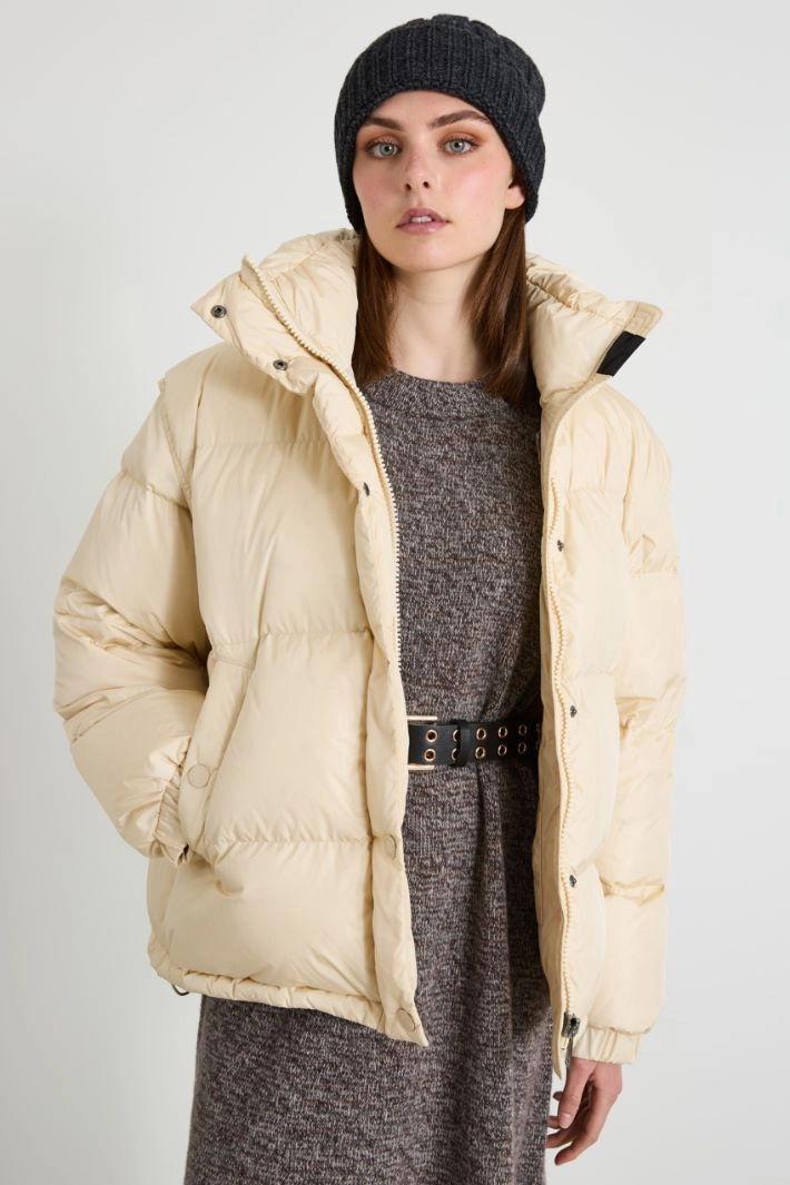 Hat in wool, viscose and cashmere, with cable knit and turn-up hem.