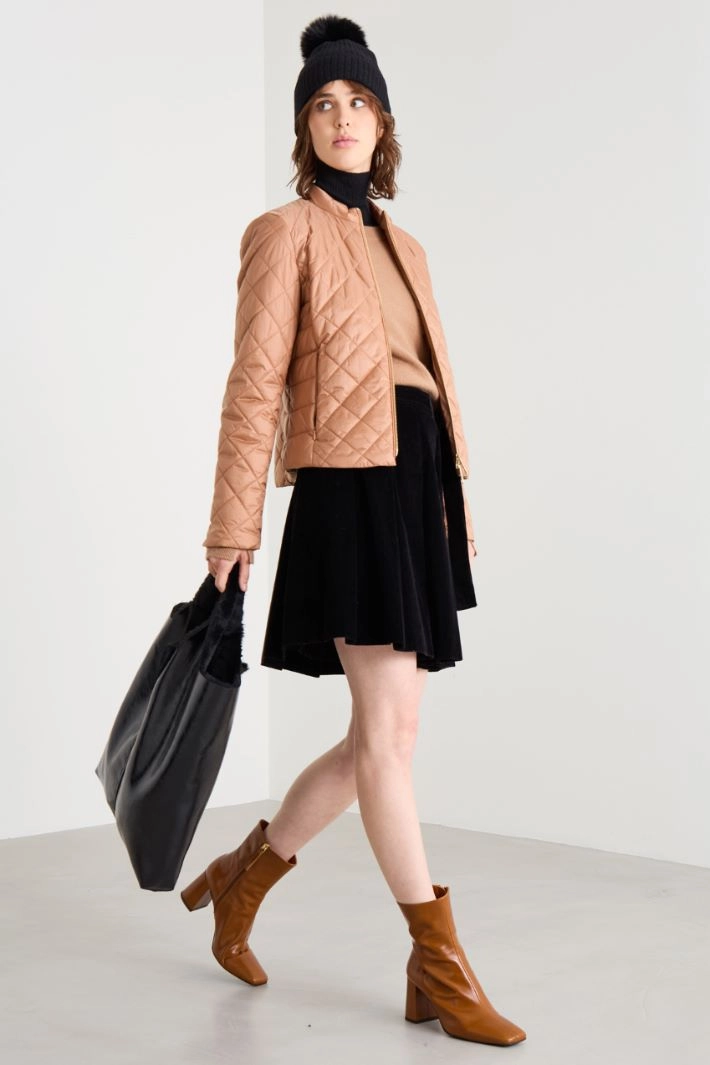 Fabric 40% wool, 25% viscose, 25% polyamide, 10% cashmere; with details in 93% acrylic, 7% polyester.