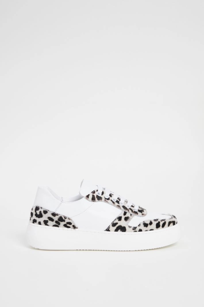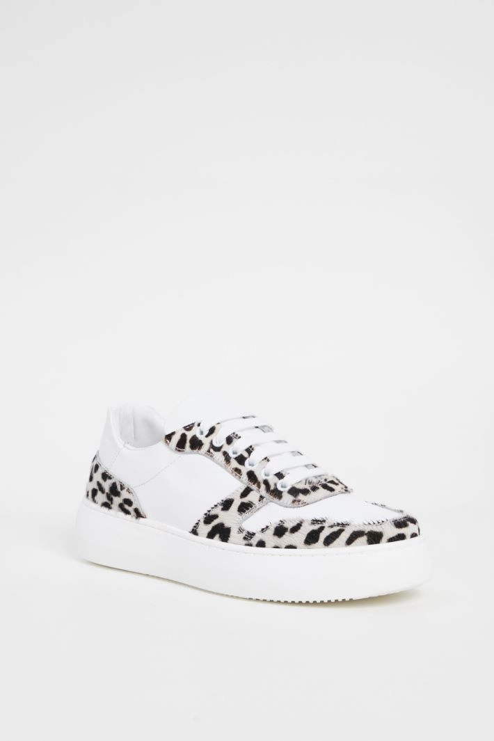 Sneakers in genuine leather with rounded toe and lace-up closure. Leather lining and rubber sole.
