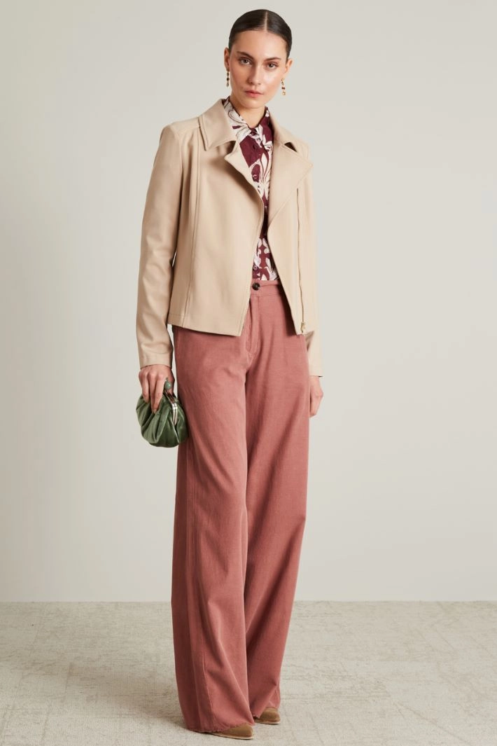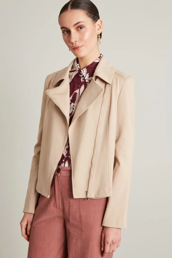 Straight-fit biker jacket in stretch viscose blend jersey, with lapel collar, long sleeves and asymmetric zip fastening.