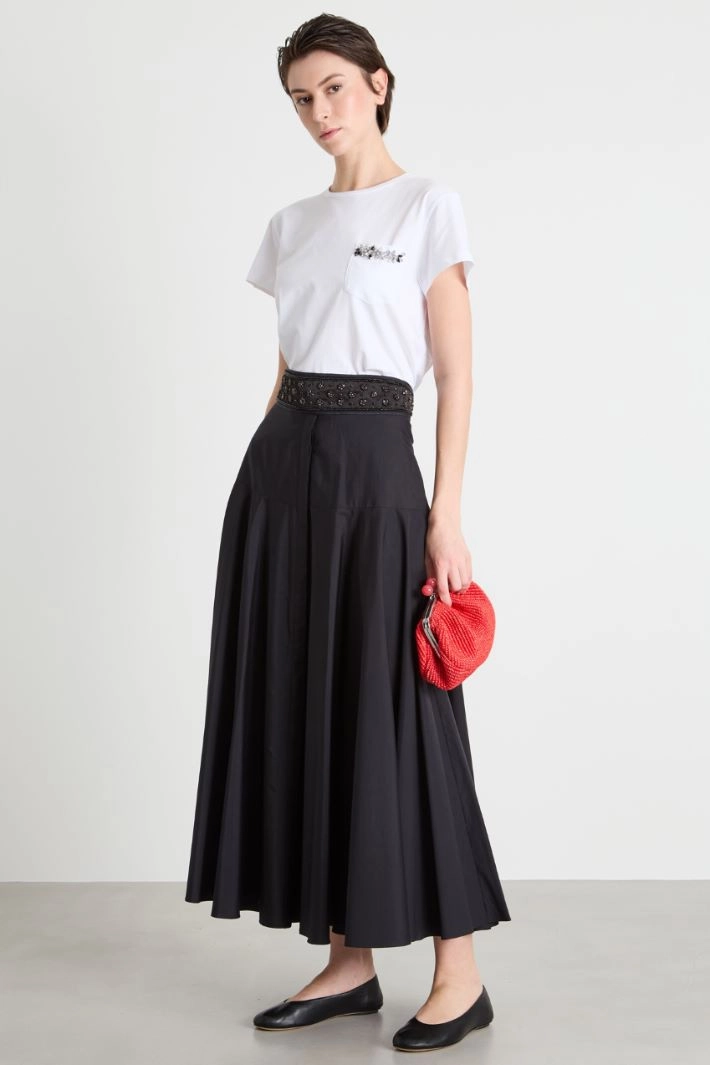 Straight-fit T-shirt in cotton jersey, featuring a round neck, short sleeves and a patch pocket embellished with rhinestone embroidery.