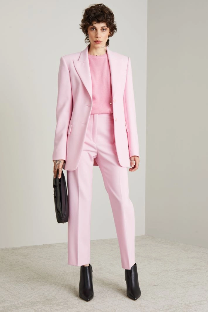 Fabric 96% virgin wool, 4% elastane; - except joining thread; lining 63% viscose, 37% polyester; sleeves lining 97% viscose, 3% acetate.