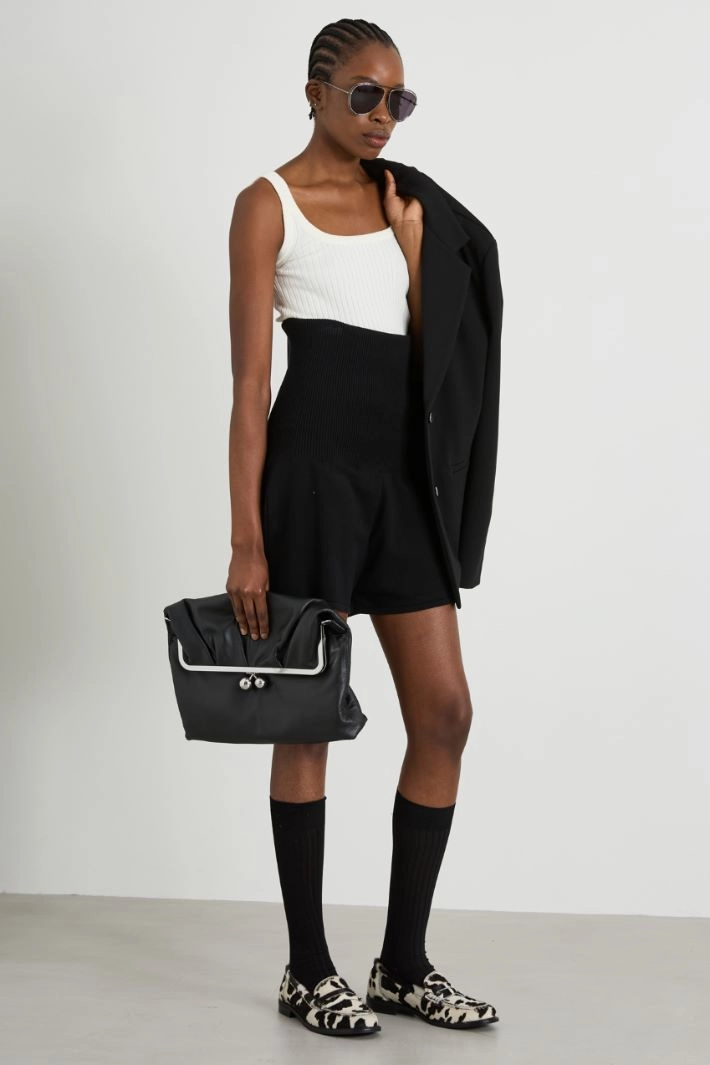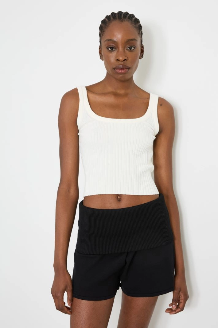 Cropped, fitted tank top in ribbed viscose blend knit, with a U-neck and shoulder straps.