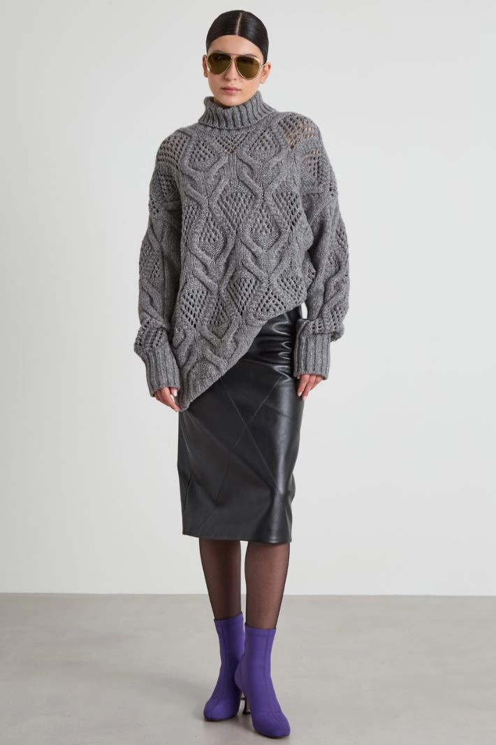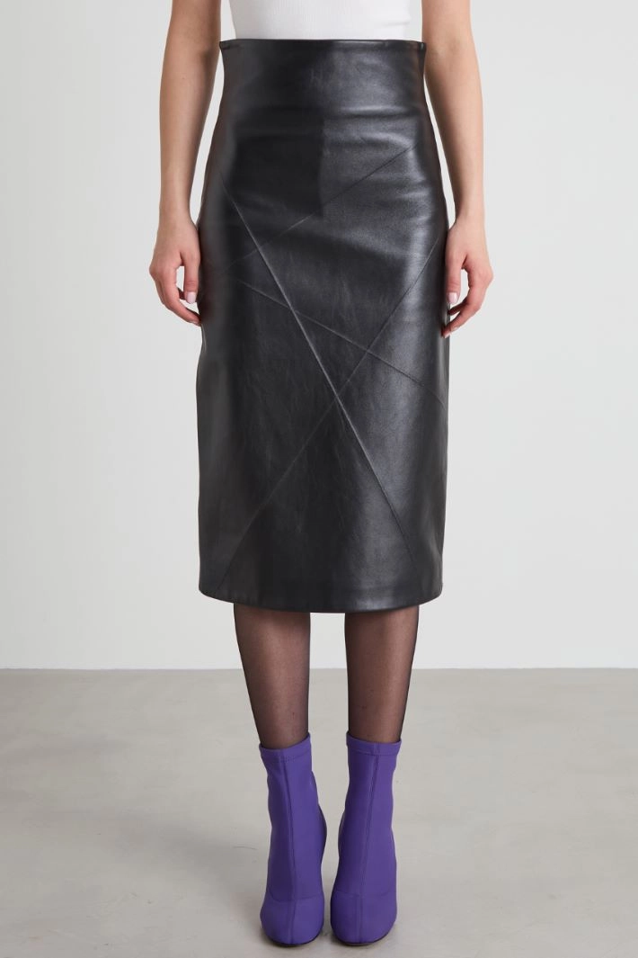 Midi skirt in genuine nappa leather, with all-over pleated motif and slit on the center back. Concealed zip fastening at the back. Lined.