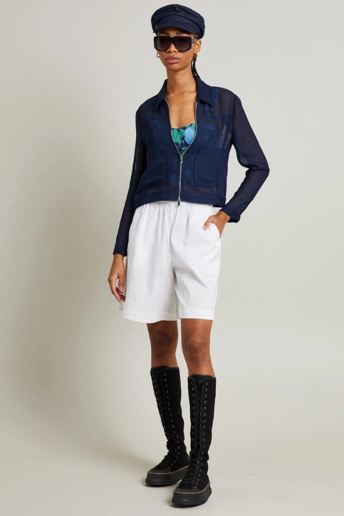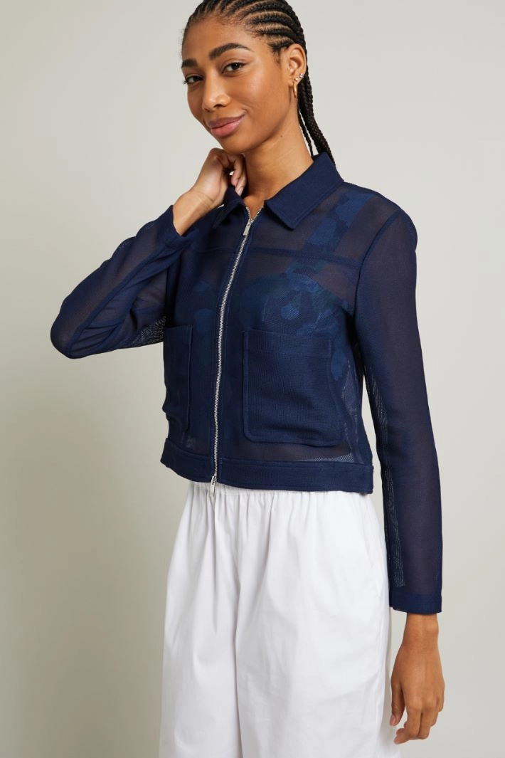 Straight-fit jacket in viscose-blend mesh fabric, with shirt collar, long sleeves, side patch pockets and double-slider zip fastening. Unlined.