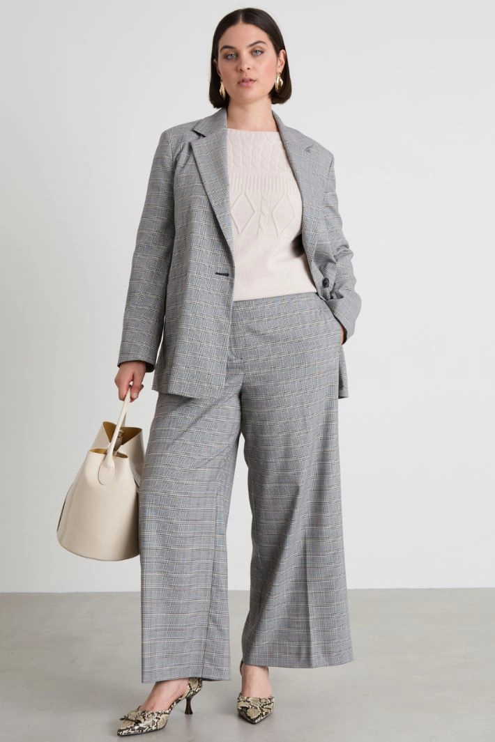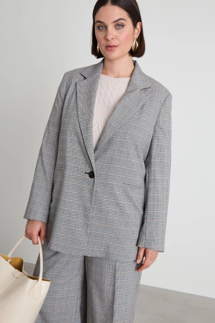 Straight-fit blazer in yarn-dyed stretch viscose blend batavia, with lapel collar, long sleeves and double-welt side pockets. Single-breasted fastening with a single button. Lined.