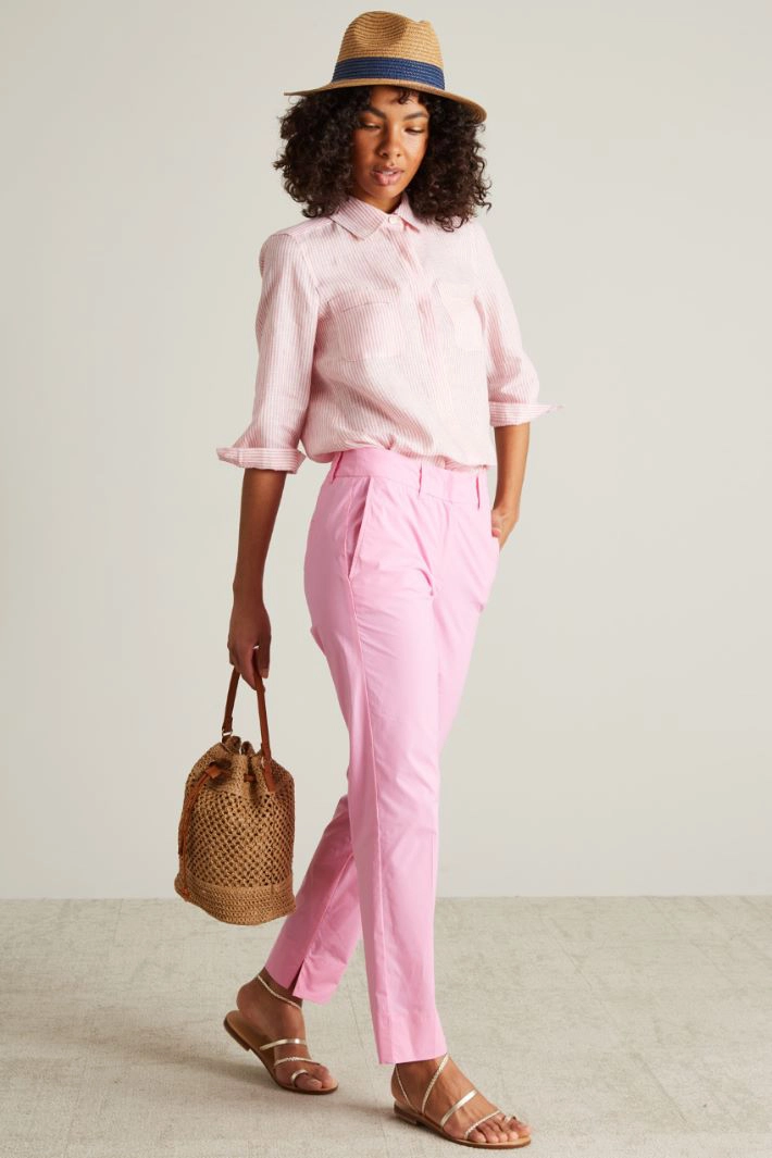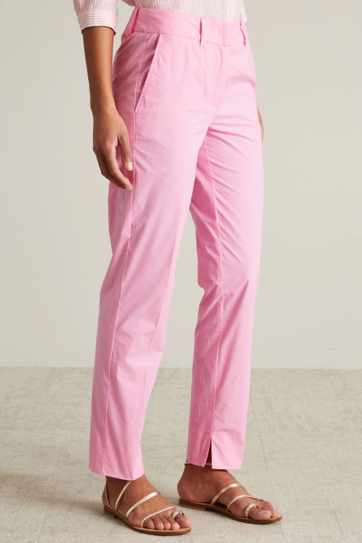 Cigarette trousers in stretch cotton poplin, with belt loops at the waist, side French pockets and welt pockets at the back, crease pressed lengthwise and hidden fastening with zip, button and hook.