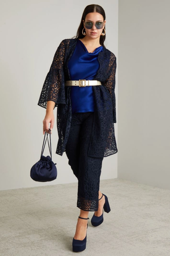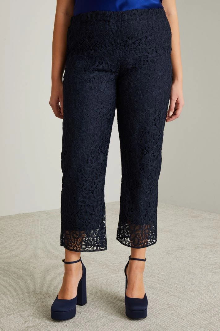 Regular-fit straight trousers in macramé lace with elasticated waist. Lined.