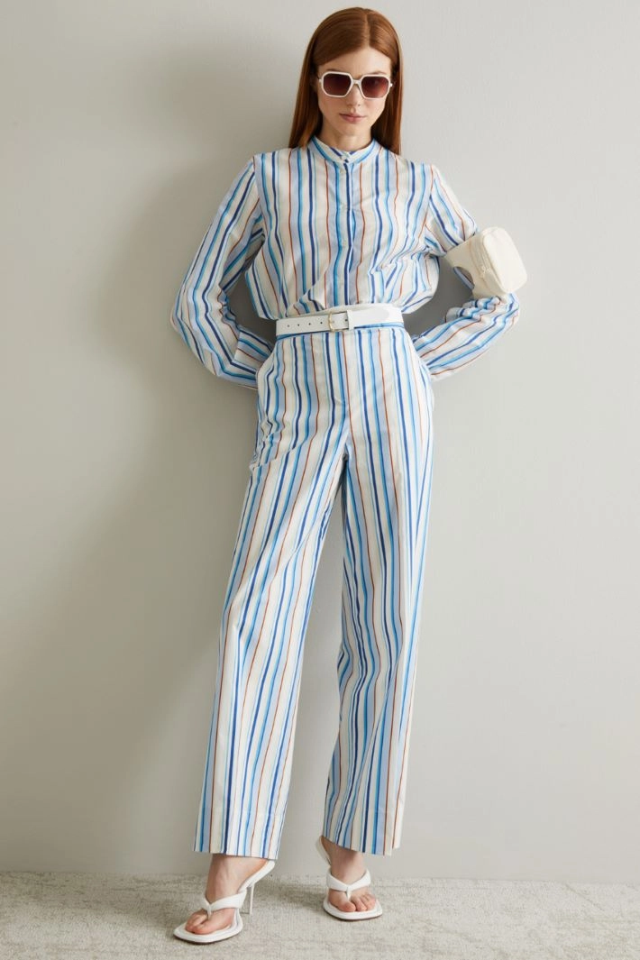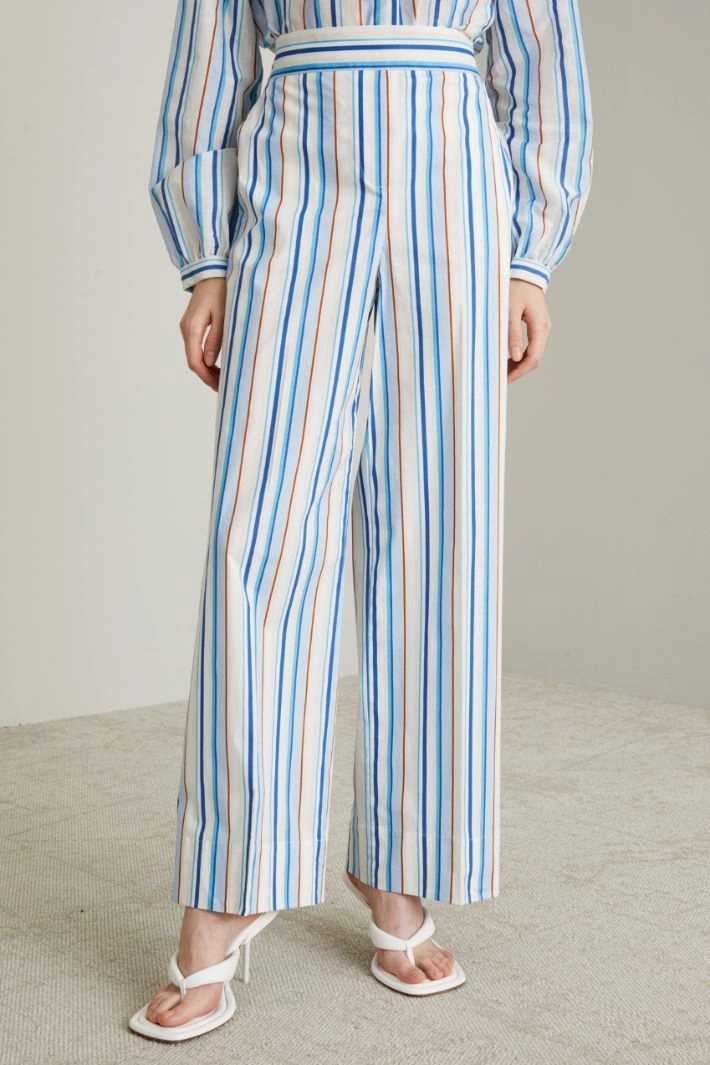 Straight-cut cotton poplin trousers with elastic waistband. French pockets