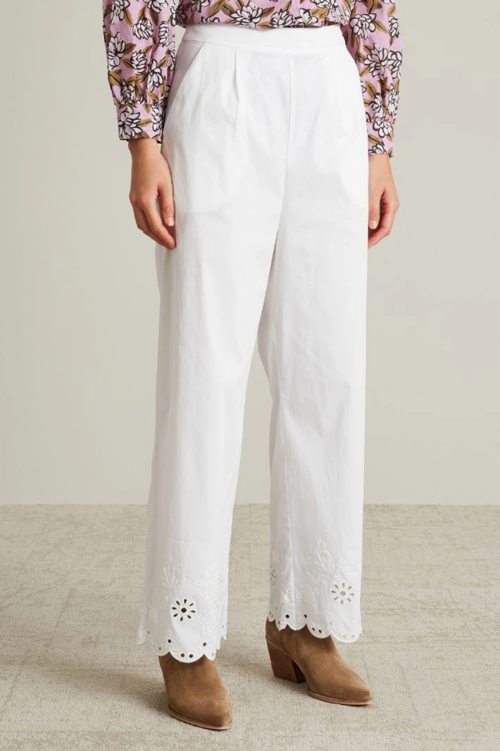 Trousers with broderie anglaise embroidery