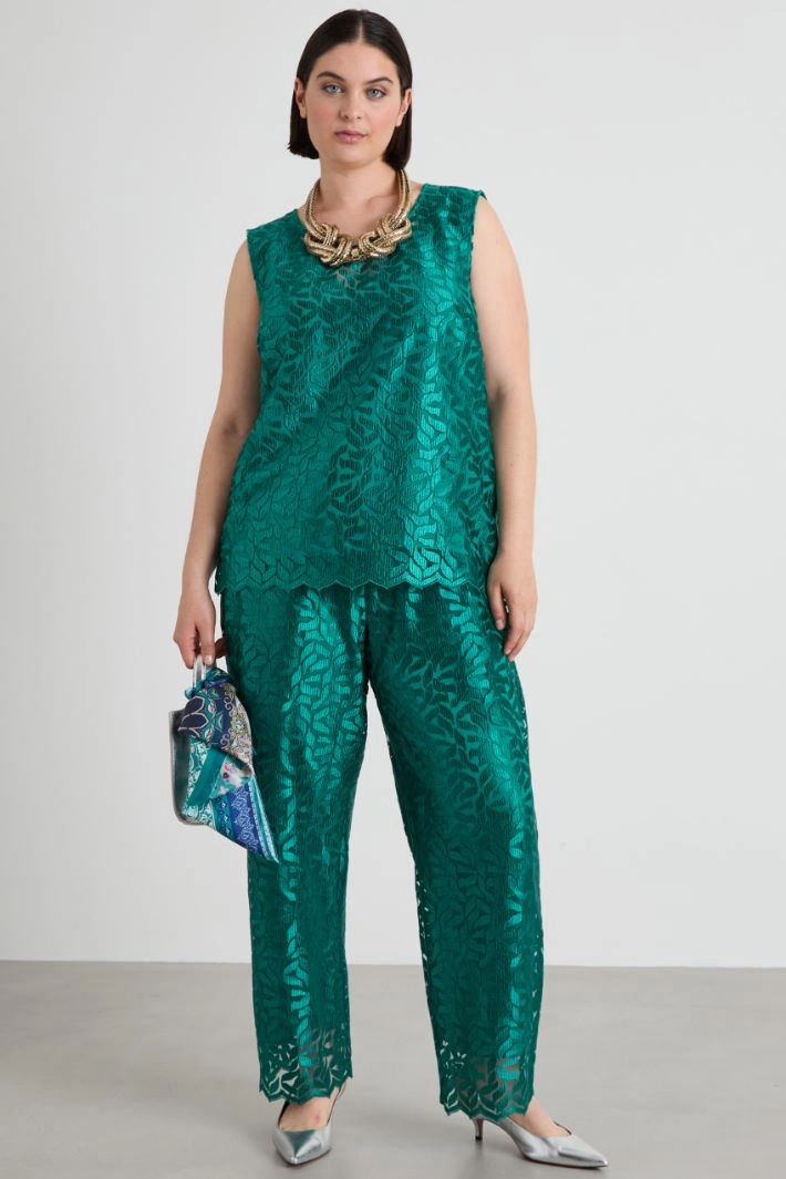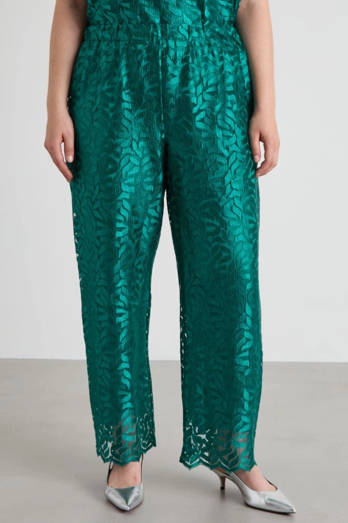 Straight-cut trousers in embroidered tulle, with elastic waistband and scalloped hem. Lined.