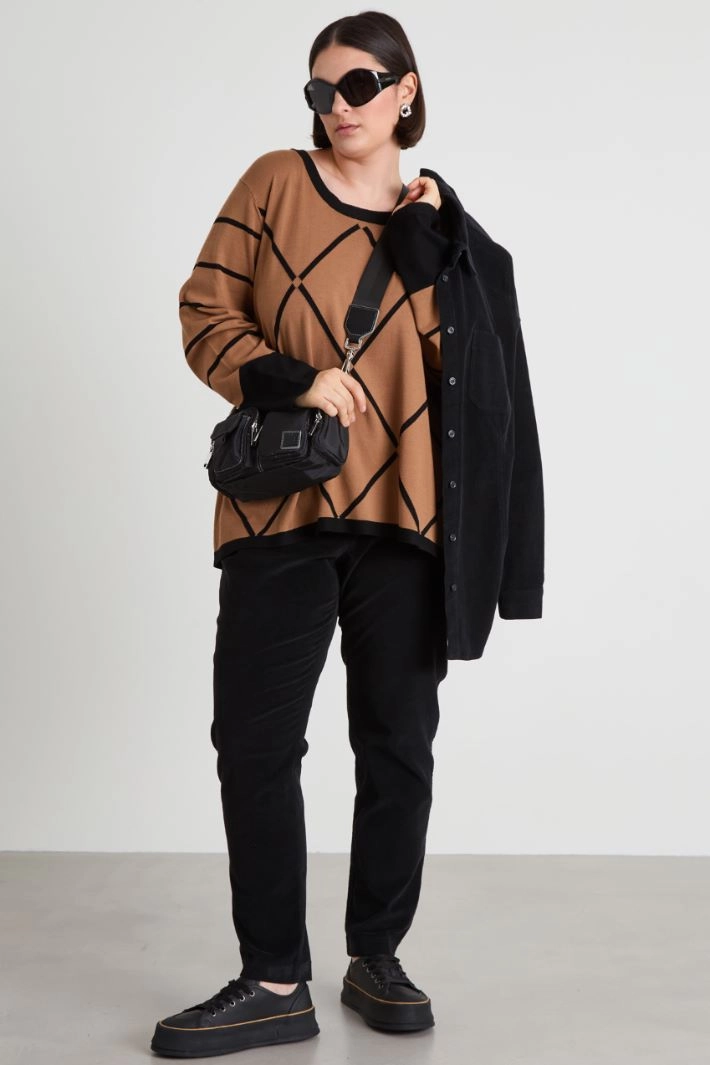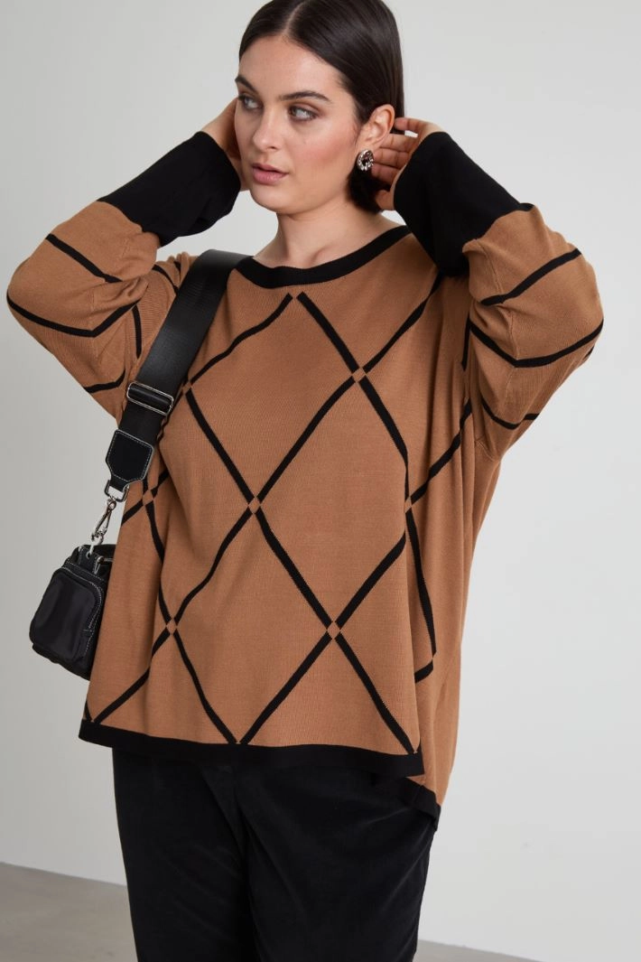 Straight-cut sweater in viscose blend yarn, with round neckline and long sleeves.