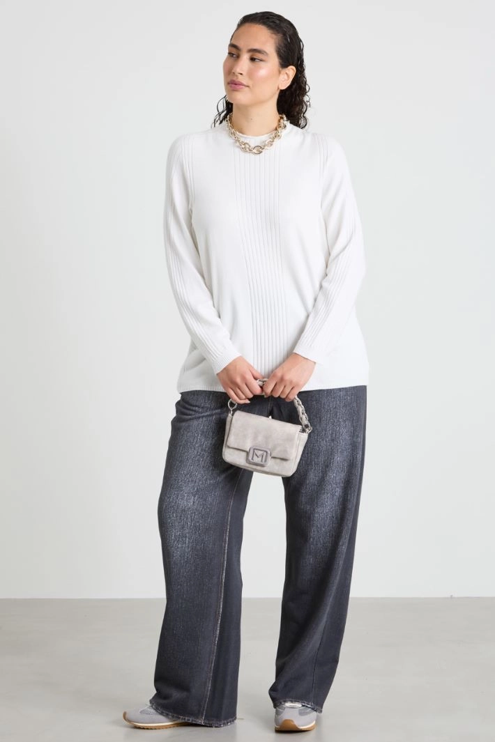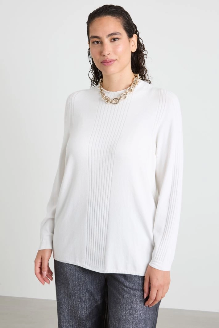 Regular-fit sweater in stretch viscose blend yarn, with flat-ribbed details, crew neck and long raglan sleeves.