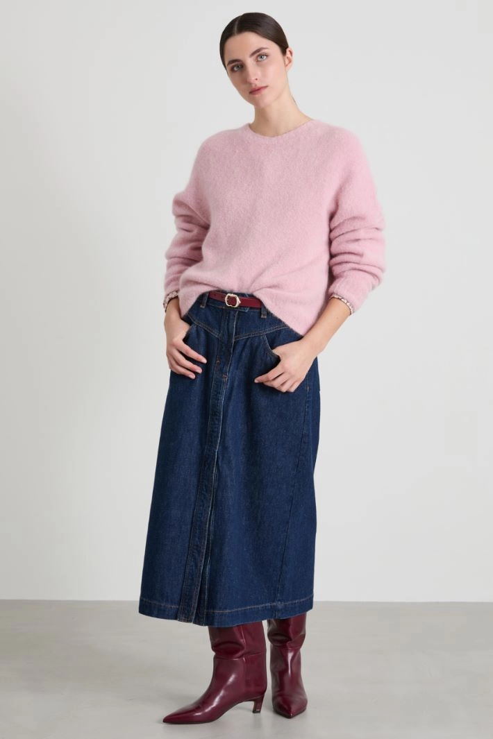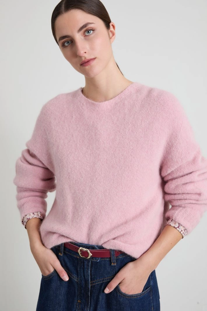 Regular-fit, loose-fit sweater in alpaca blend yarn, with a round neckline and long dropped sleeves.