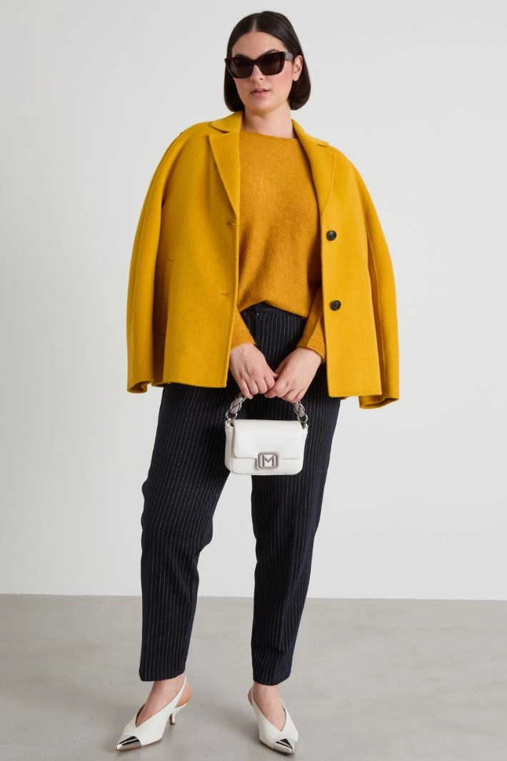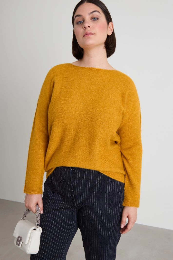 Straight-cut sweater in wool blend yarn, with round neck and long sleeves.