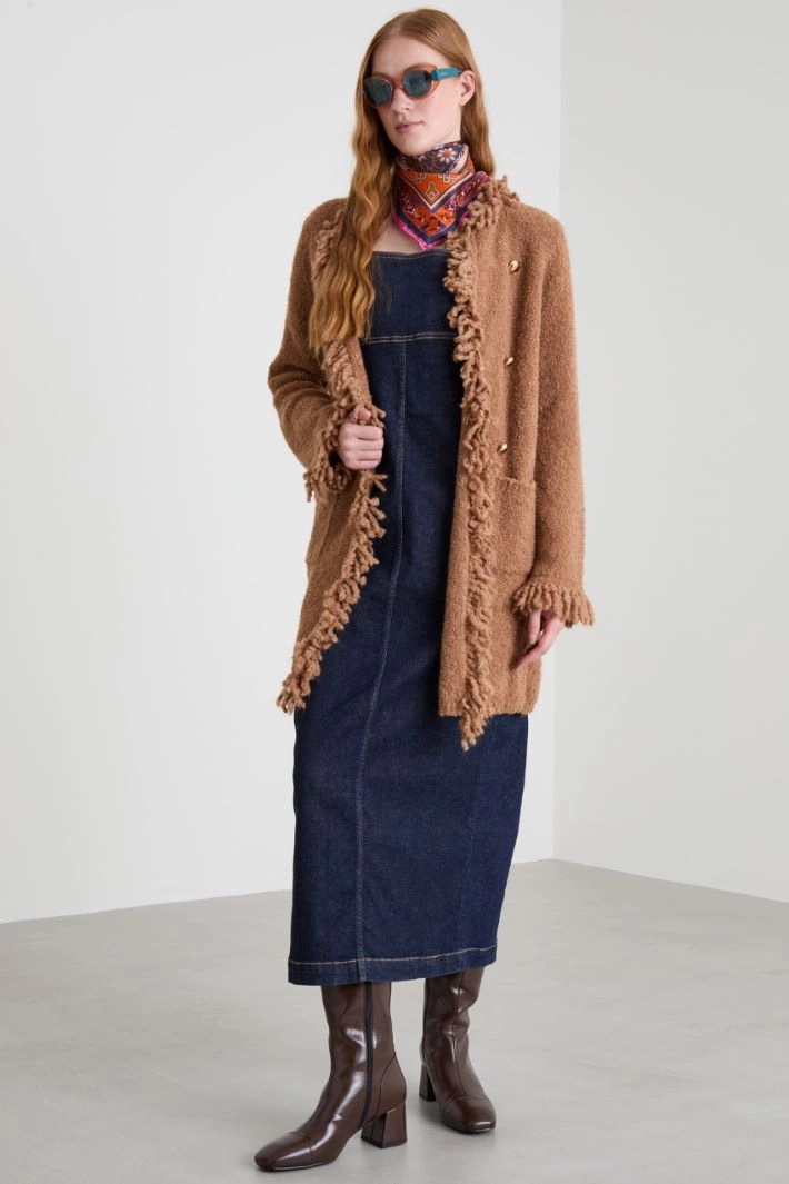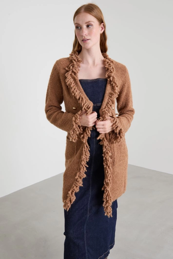Straight-fit jacket in wool-blend bouclé knit, with long sleeves, front patch pockets and frayed edge details and metal buttons.