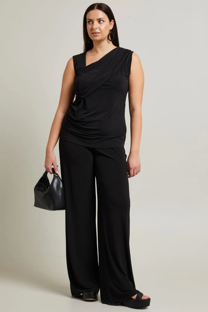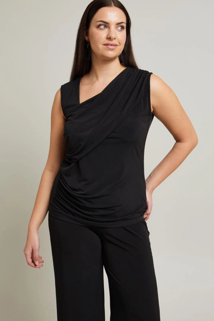 Semi-fitted top in stretch jersey, with asymmetrical shoulders and a gathered design.