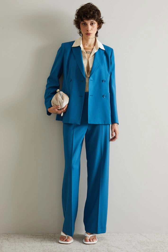 Fabric 100% virgin wool; lining 50% acetate, 50% viscose; sleeves lining 65% acetate, 31% polyamide, 4% elastane.