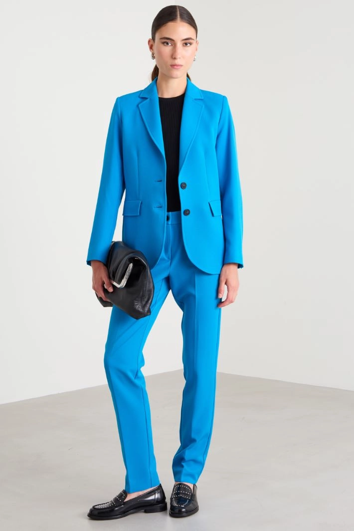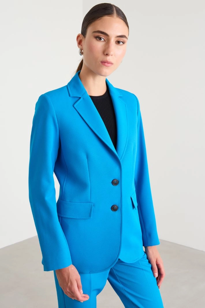 Fitted blazer in flowing twill fabric, with lapel collar, long sleeves with button and flap pockets. Button fastening. Lined.
