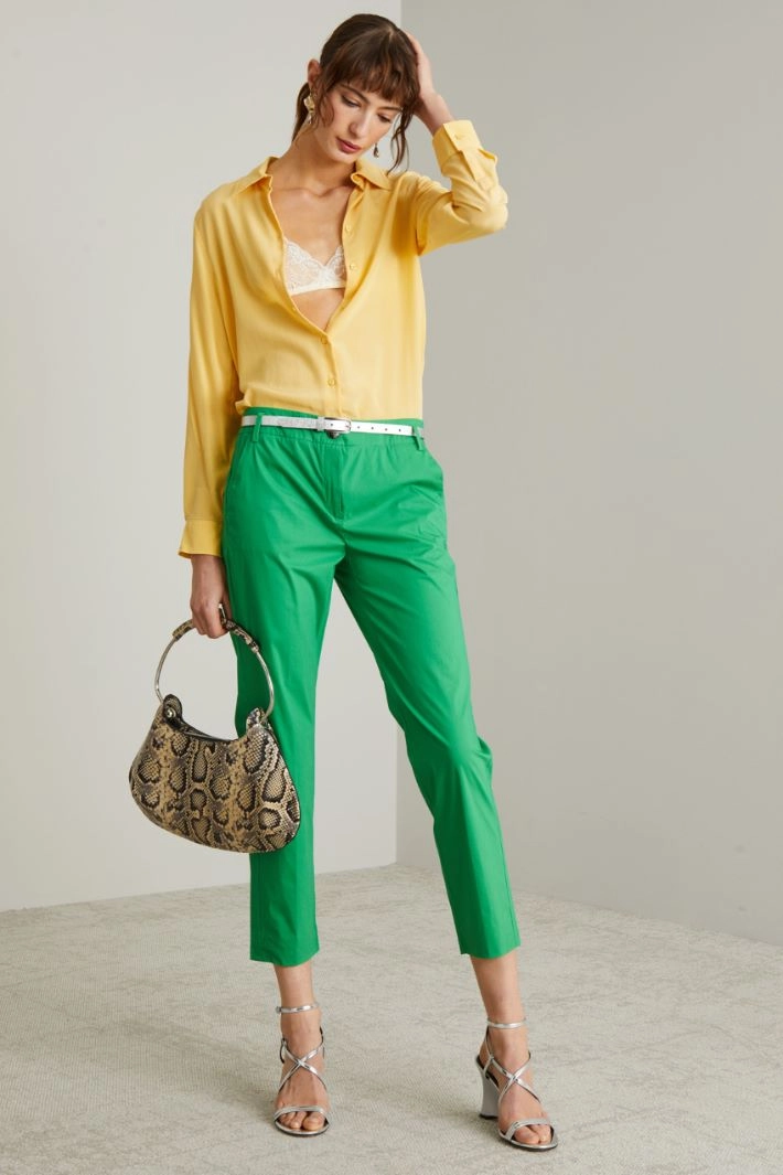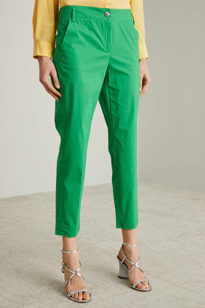 Straight-cut trousers in cotton poplin with waistband and belt loops. French and welt pockets on the back. Zip and button fastening.